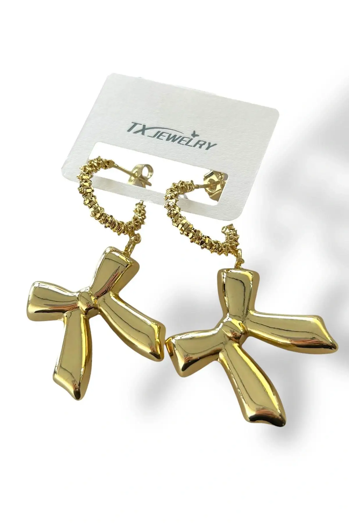 Altın Renk Kurdele Figürlü14K Altın Kaplama TX Küpe (Çift)