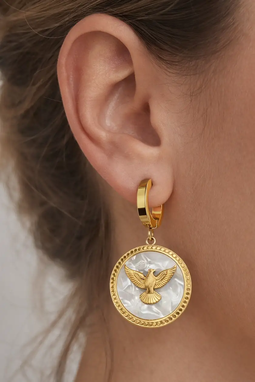 Altın Renk Kuş Figürlü Çelik Küpe (Çift)
