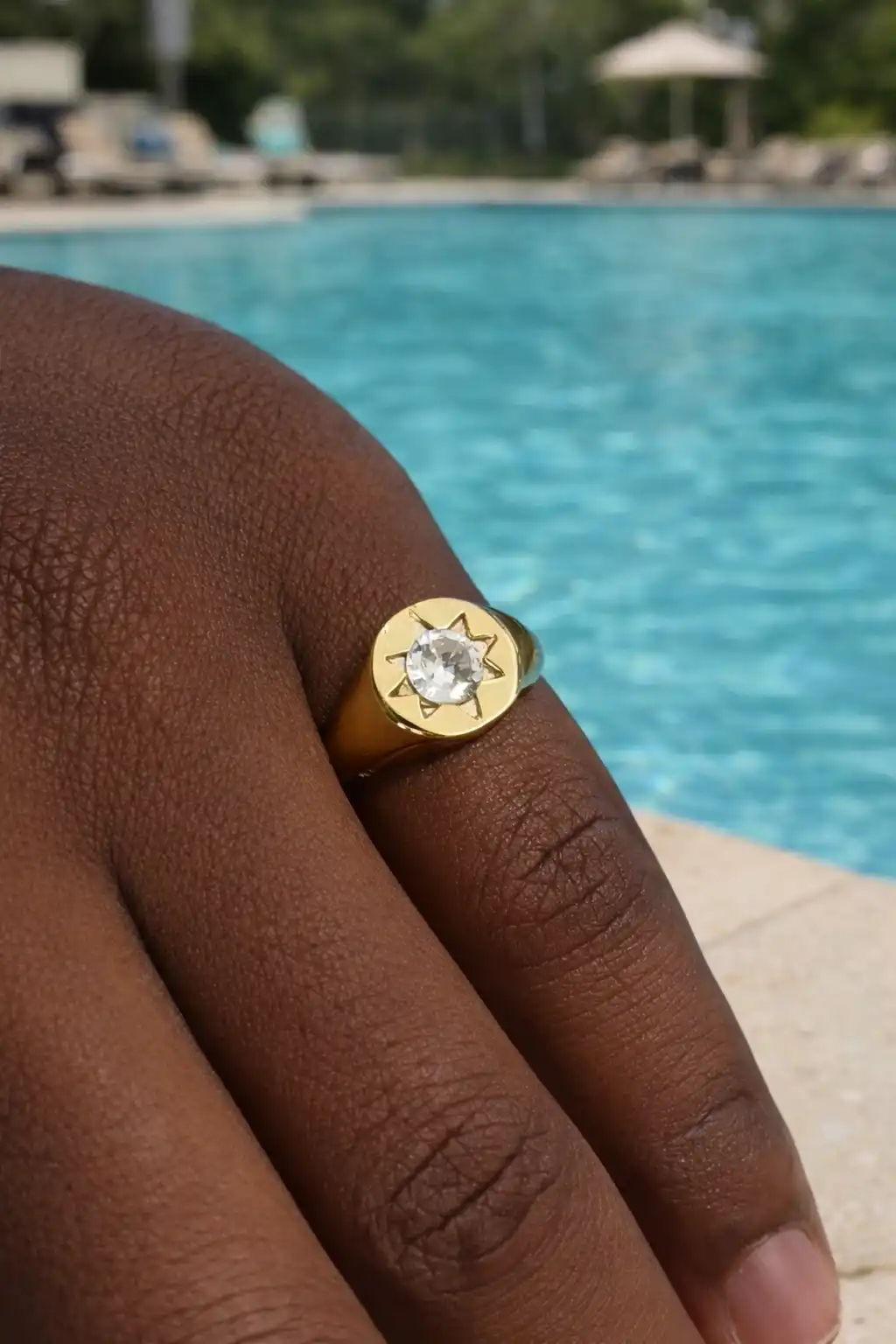 Altın Renk Kuzey Yıldızı Detaylı Serçe Parmak Yüzük (Ayarlanabilir)