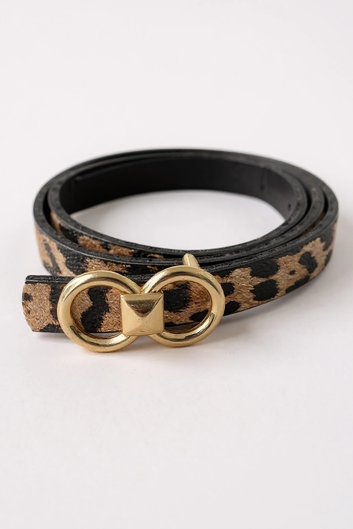 Altın Renk Leopar Desenli Kadın Deri Kemer