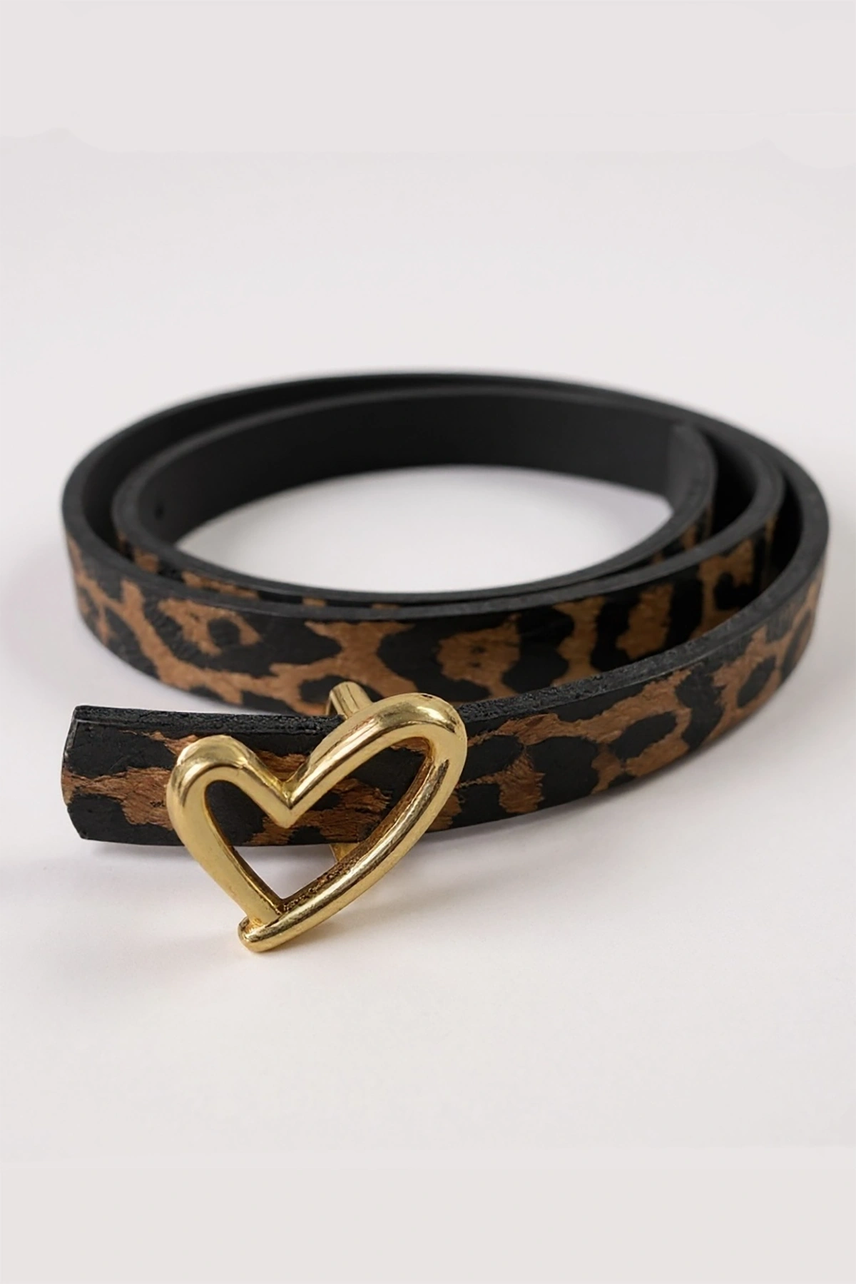 Altın Renk Leopar Desenli Kadın Deri Kemer