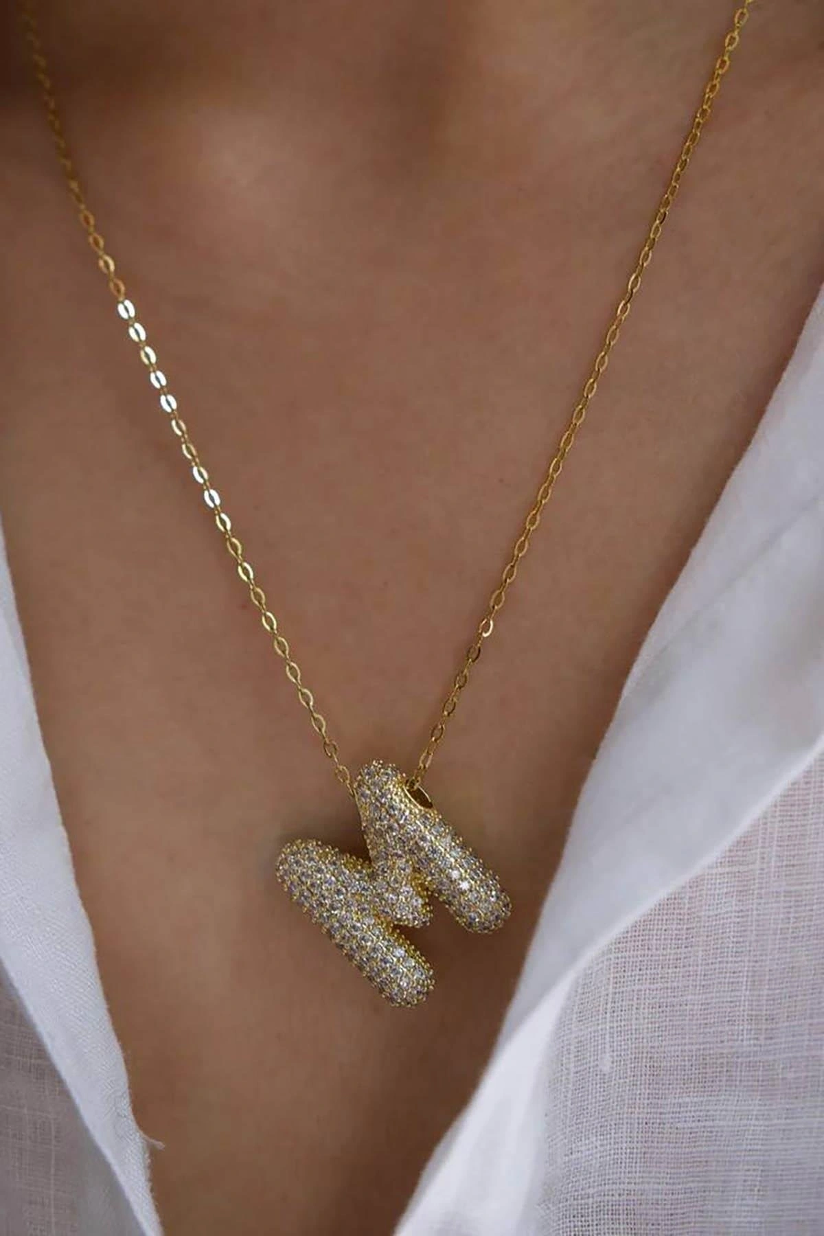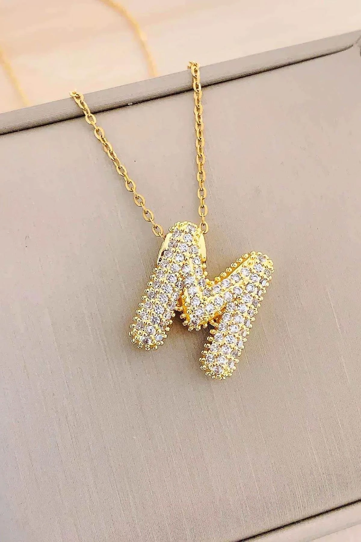Altın Renk M Harf Taş Detaylı Çelik Kolye
