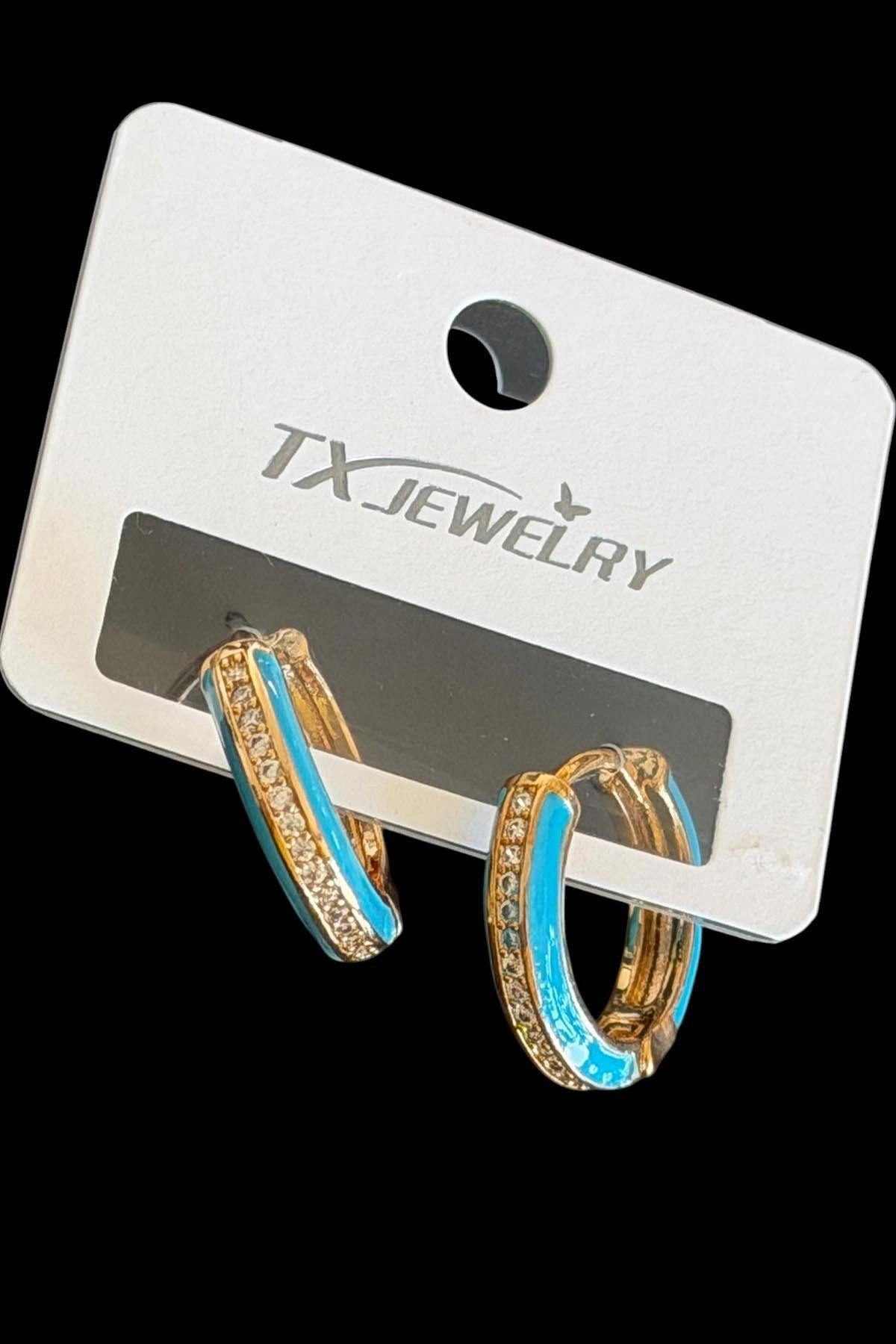 Altın Renk Mavi Mineli Tx Halka Küpe (Çift)