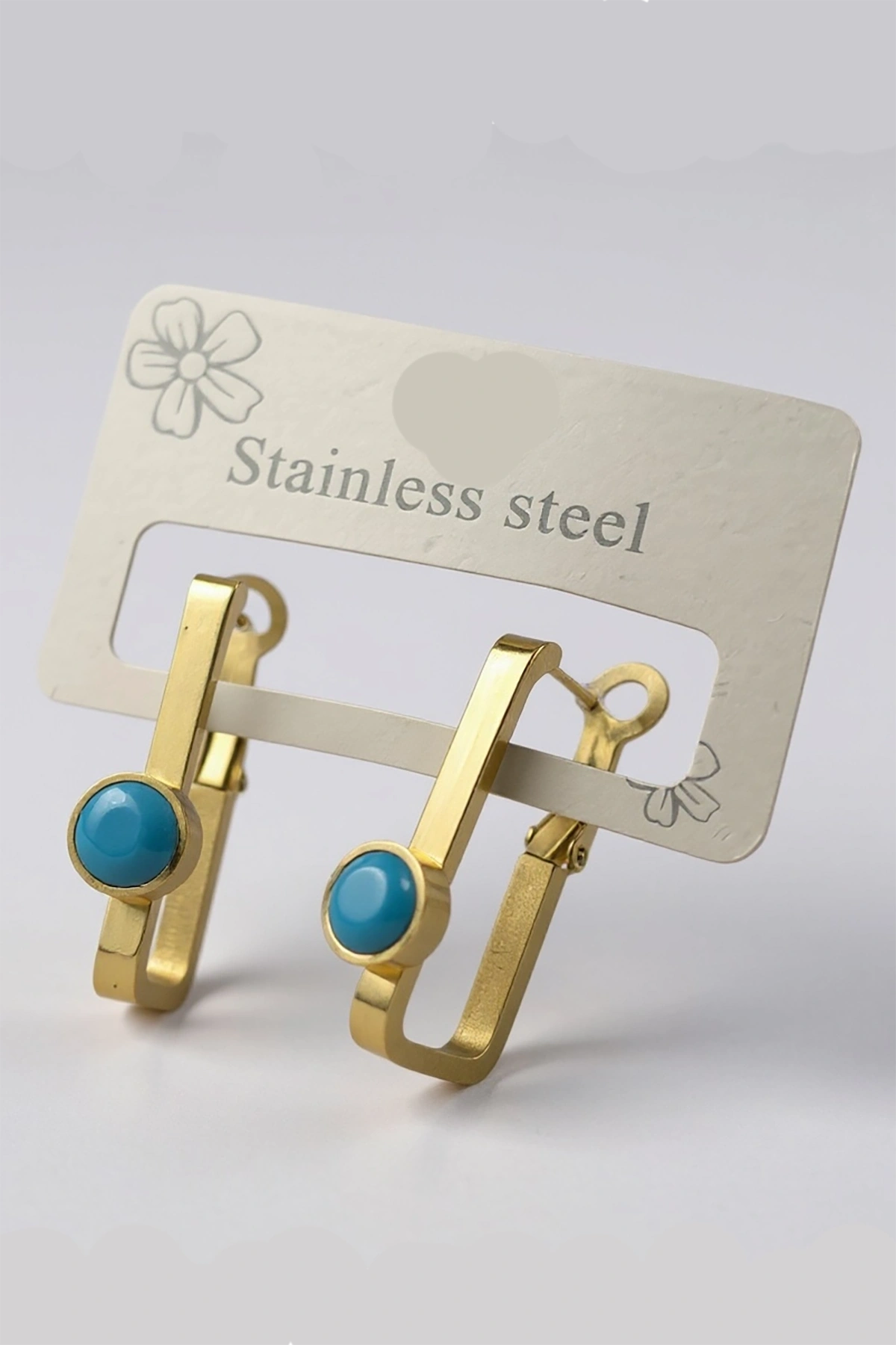Altın Renk Mavi Taş Detaylı Çelik Küpe (Çift)