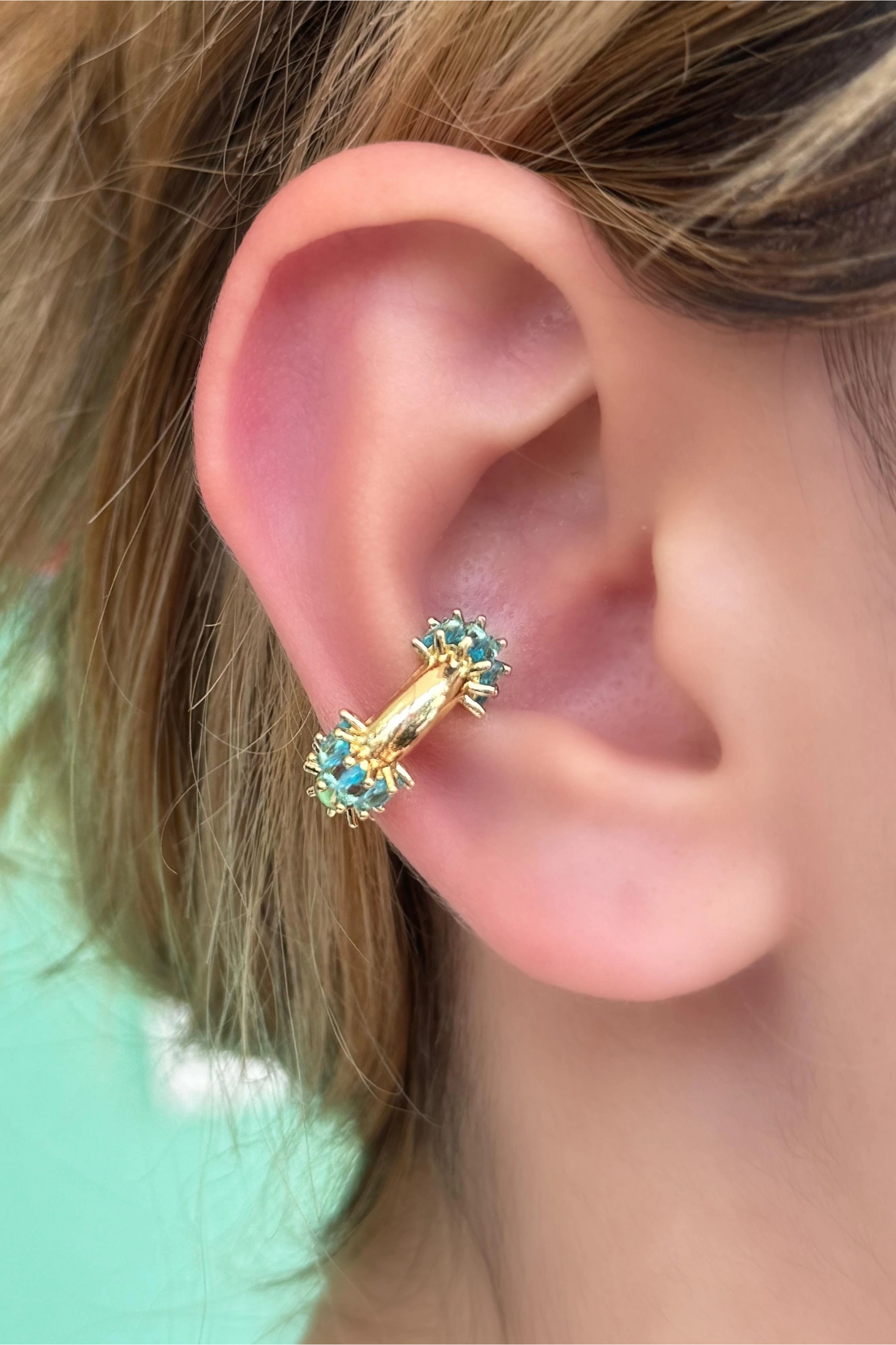 Altın Renk Mavi Taş Detaylı Ear Cuff (Tek)