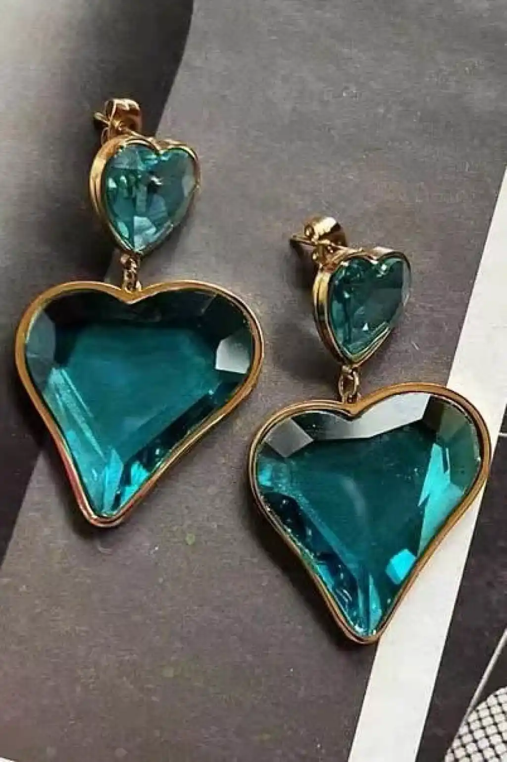 Altın Renk Mavi Taş Detaylı Kalp Figürlü Çelik Küpe (Çift)