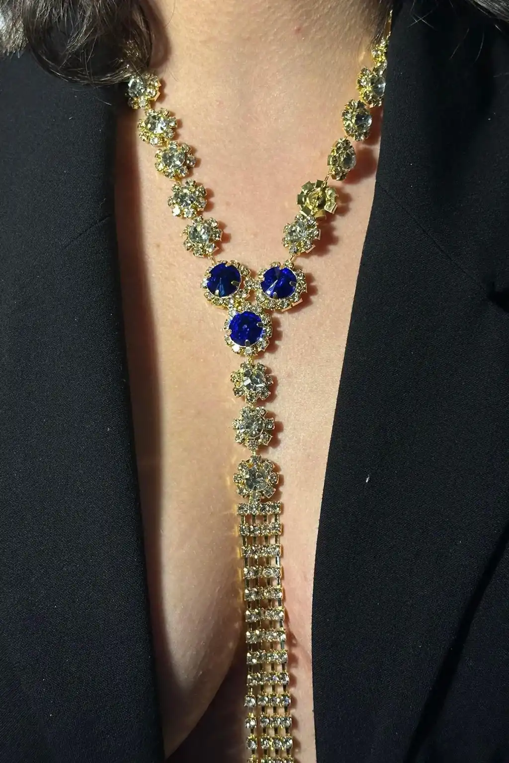 Altın Renk Mavi Taş Detaylı Vücut Aksesuarı