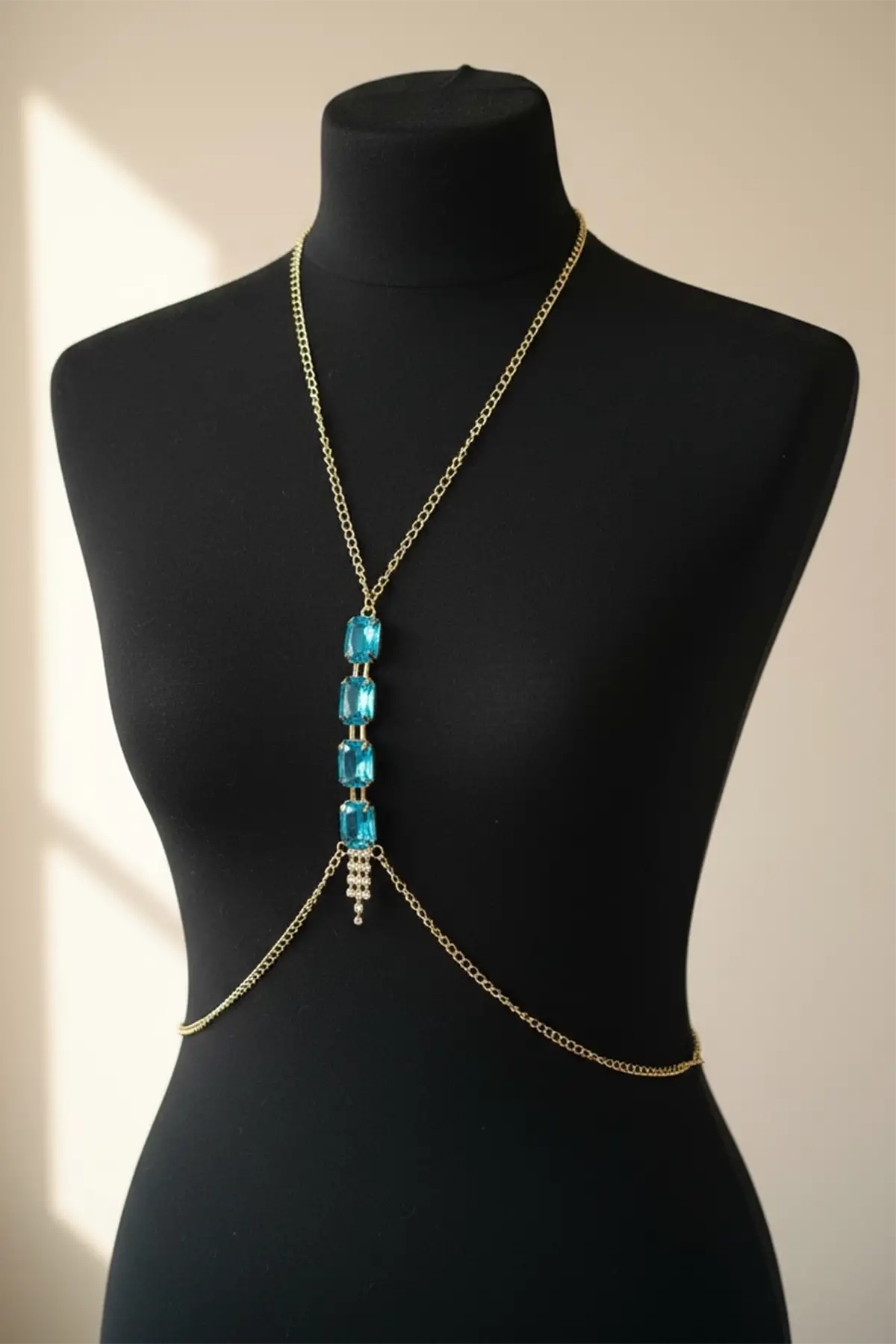 Altın Renk Mavi Taş Detaylı Vücut Aksesuarı