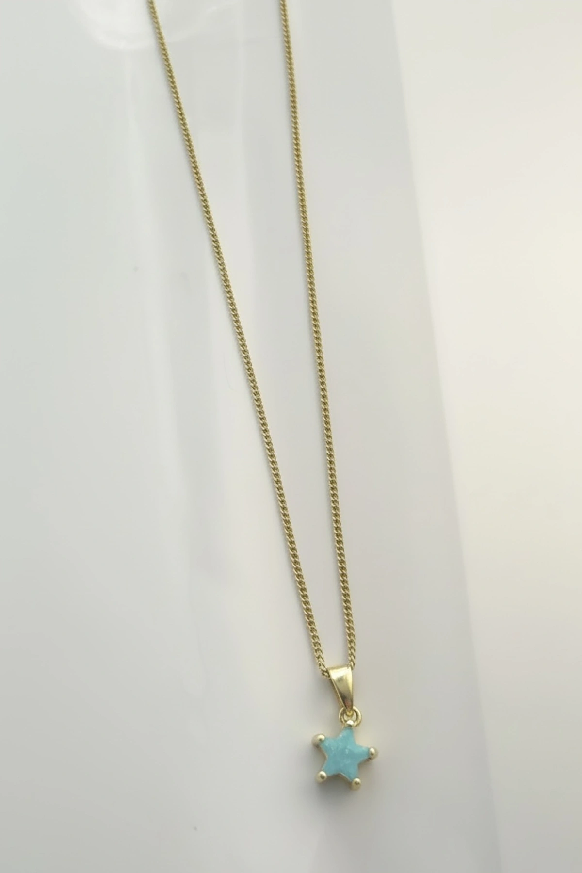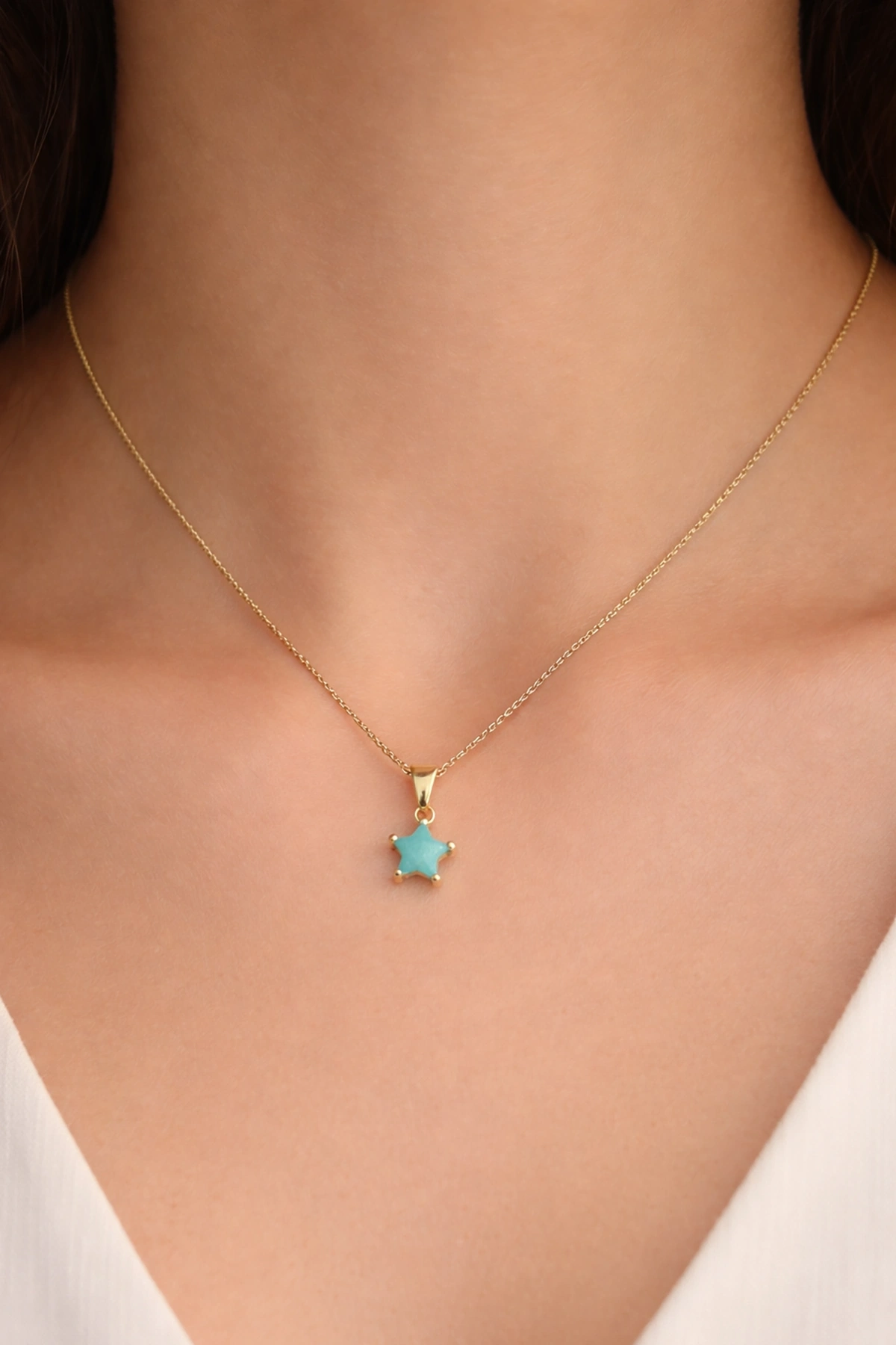Altın Renk Mavi Yıldız Figürlü Taş Detaylı Çelik Kolye