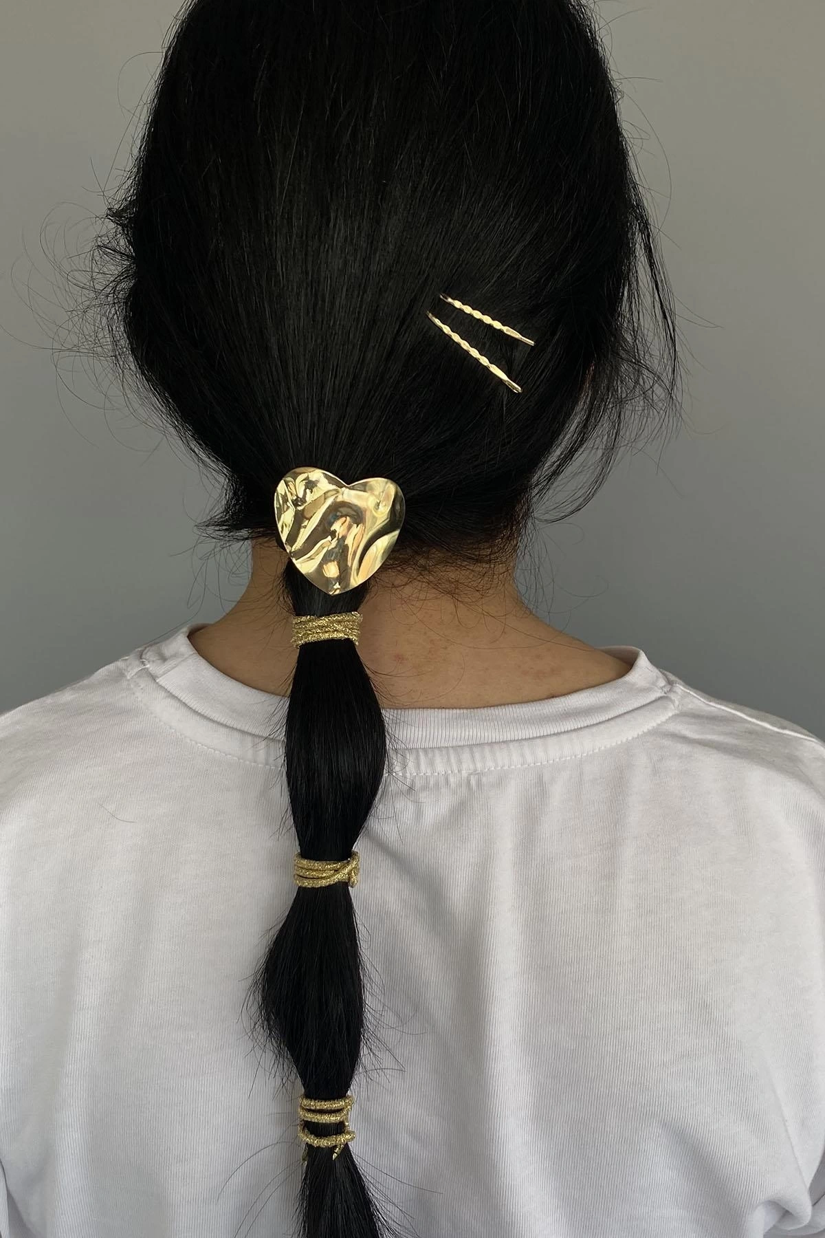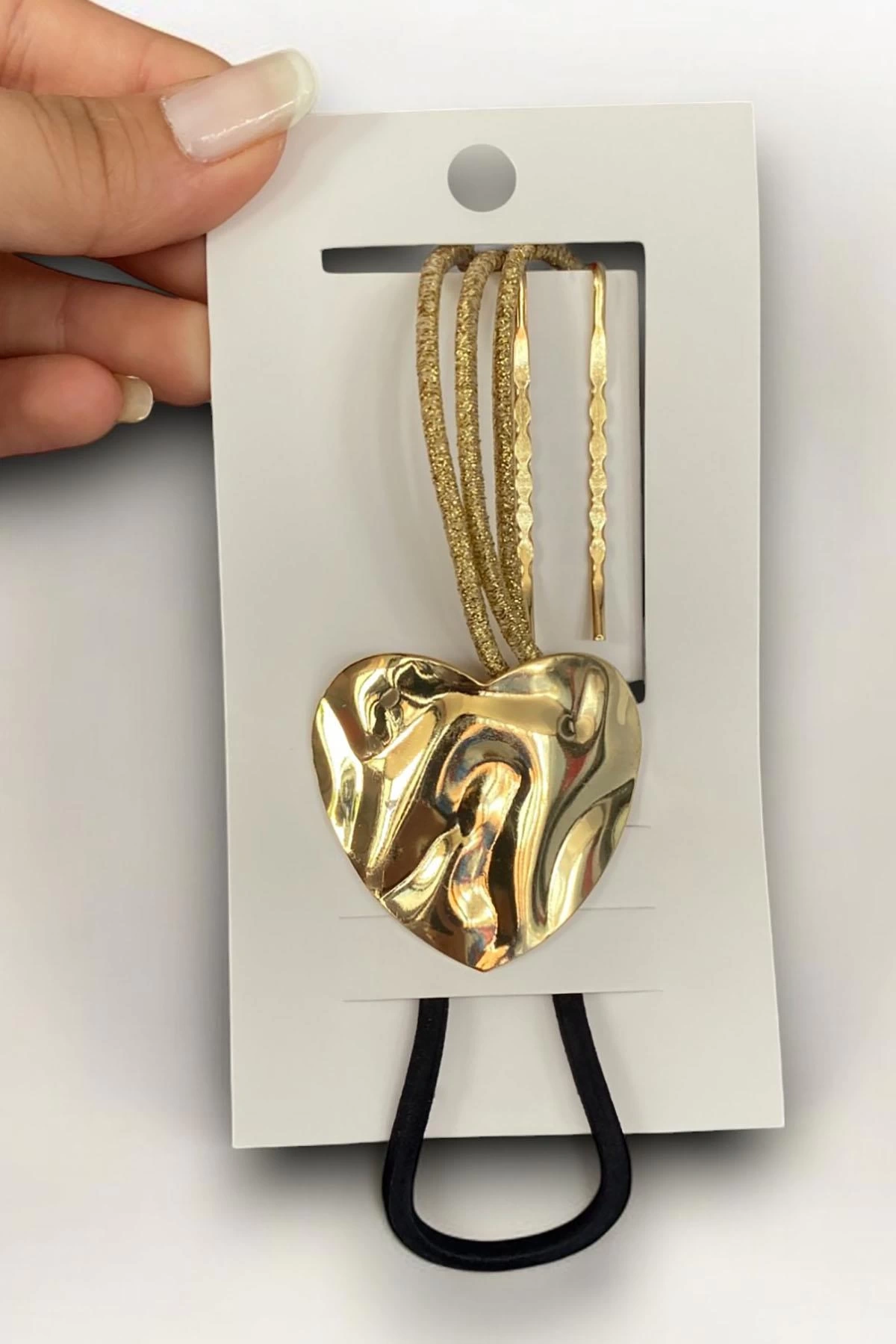 Altın Renk Metal Detaylı Lastik Toka Ve Tel Toka Set