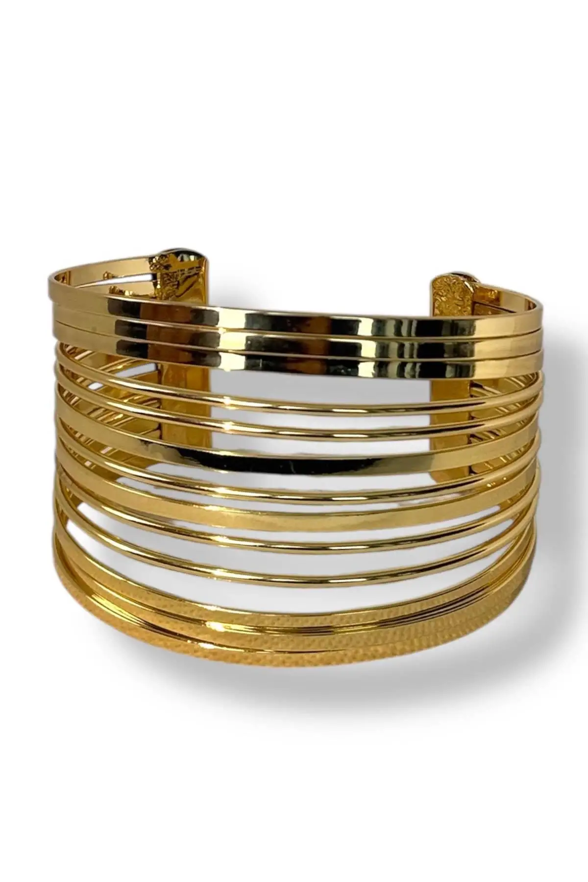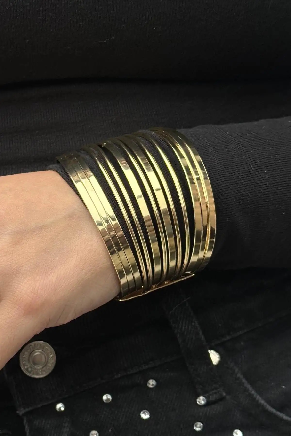 Altın Renk Taş Detaylı Kelepçe Bileklik
