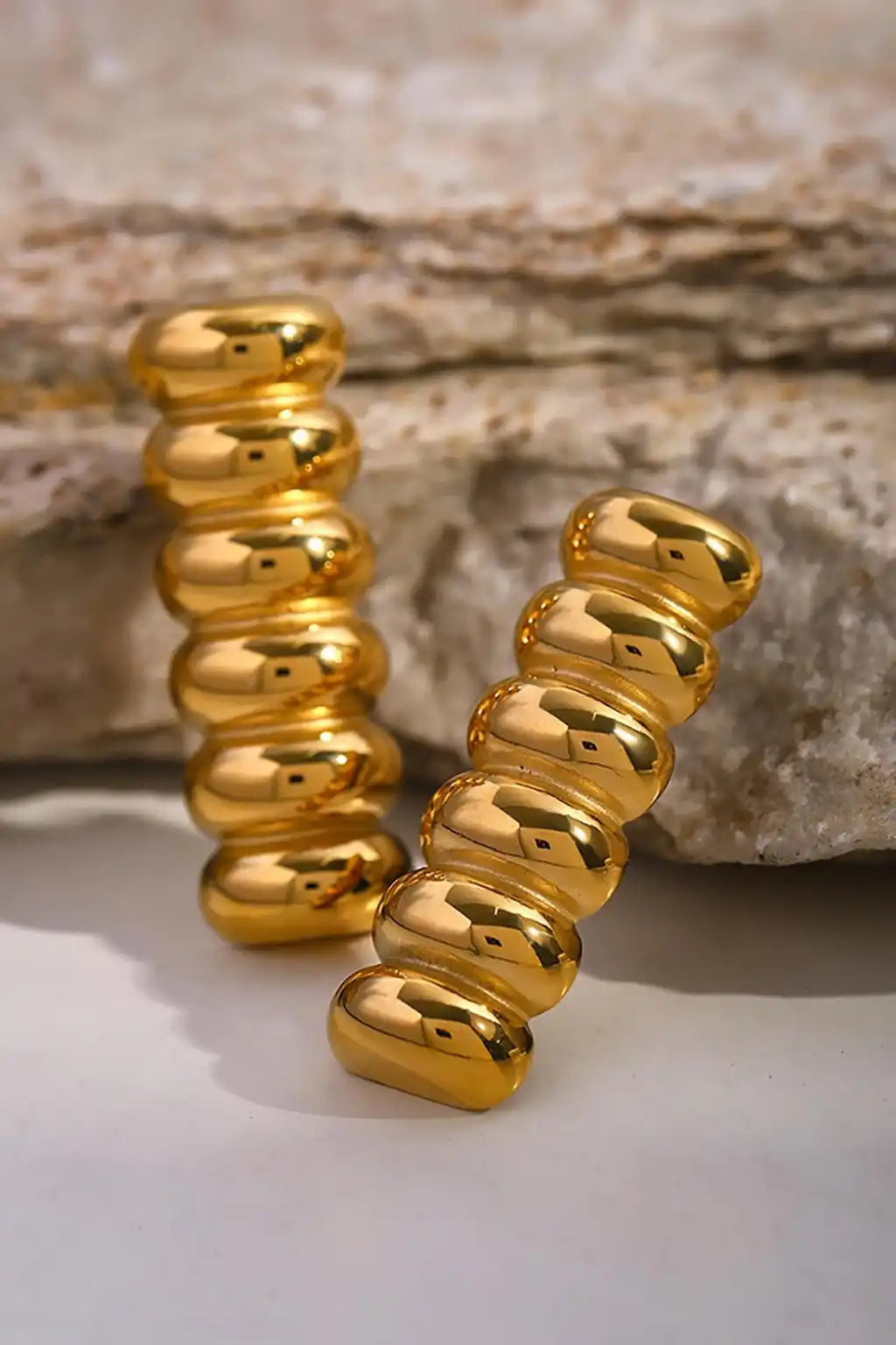 - Zarif tasarımıyla dikkat çeken bu çift küpe, altın rengi detaylarıyla göz alıcı bir görünüm sunar.