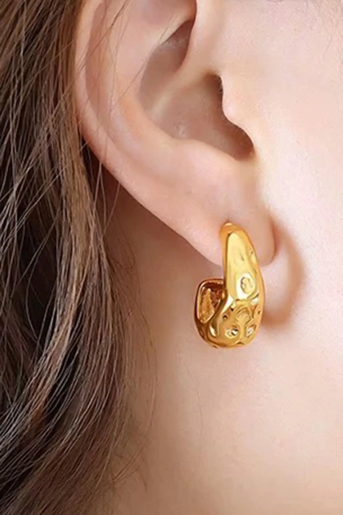 Altın Renk Taş Detaylı 14K Altın Kaplama TX Halka Küpe (Çift)