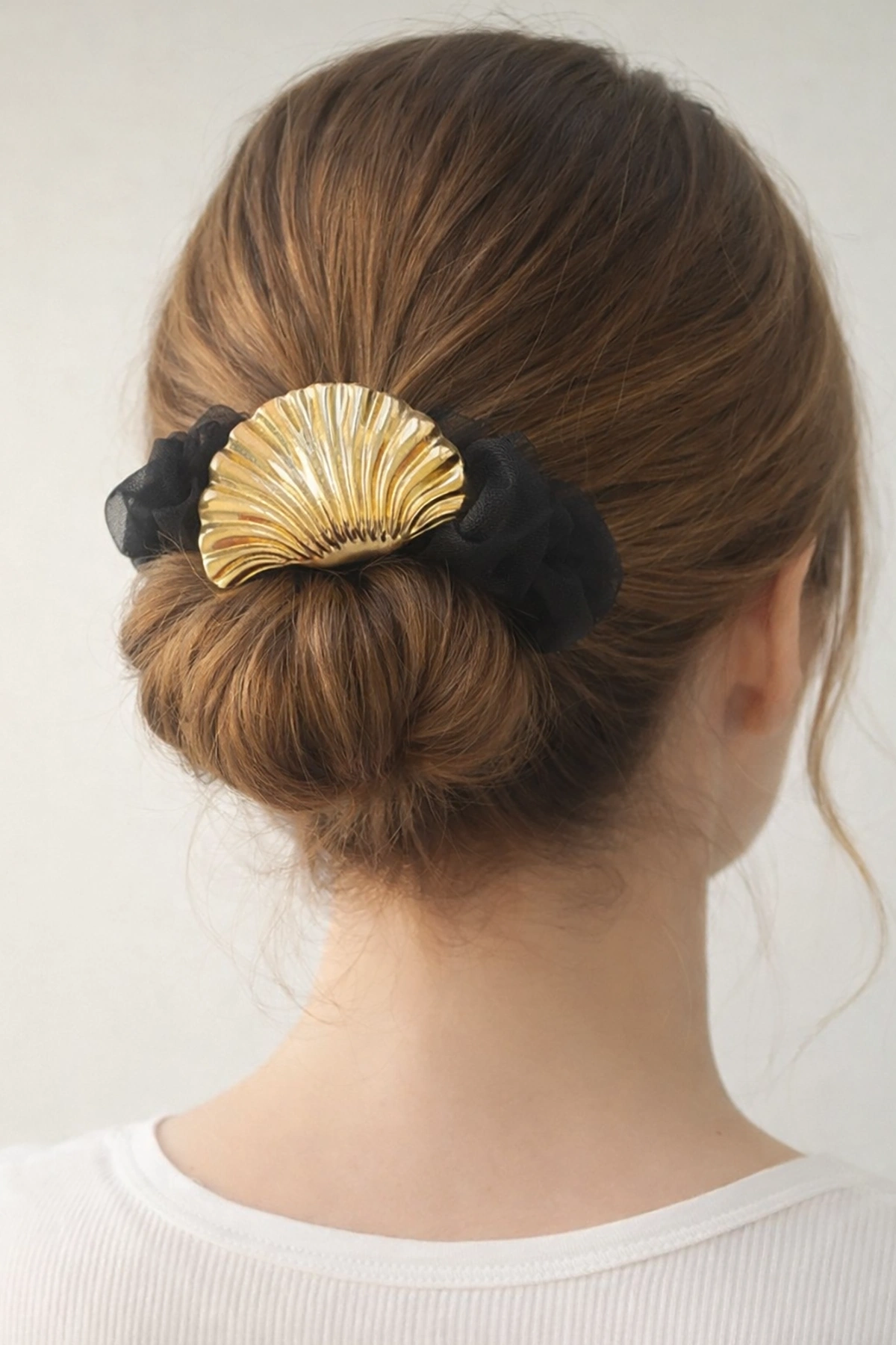 Altın Renk Deniz Kabuğu Detaylı Krem Renk Simit Toka