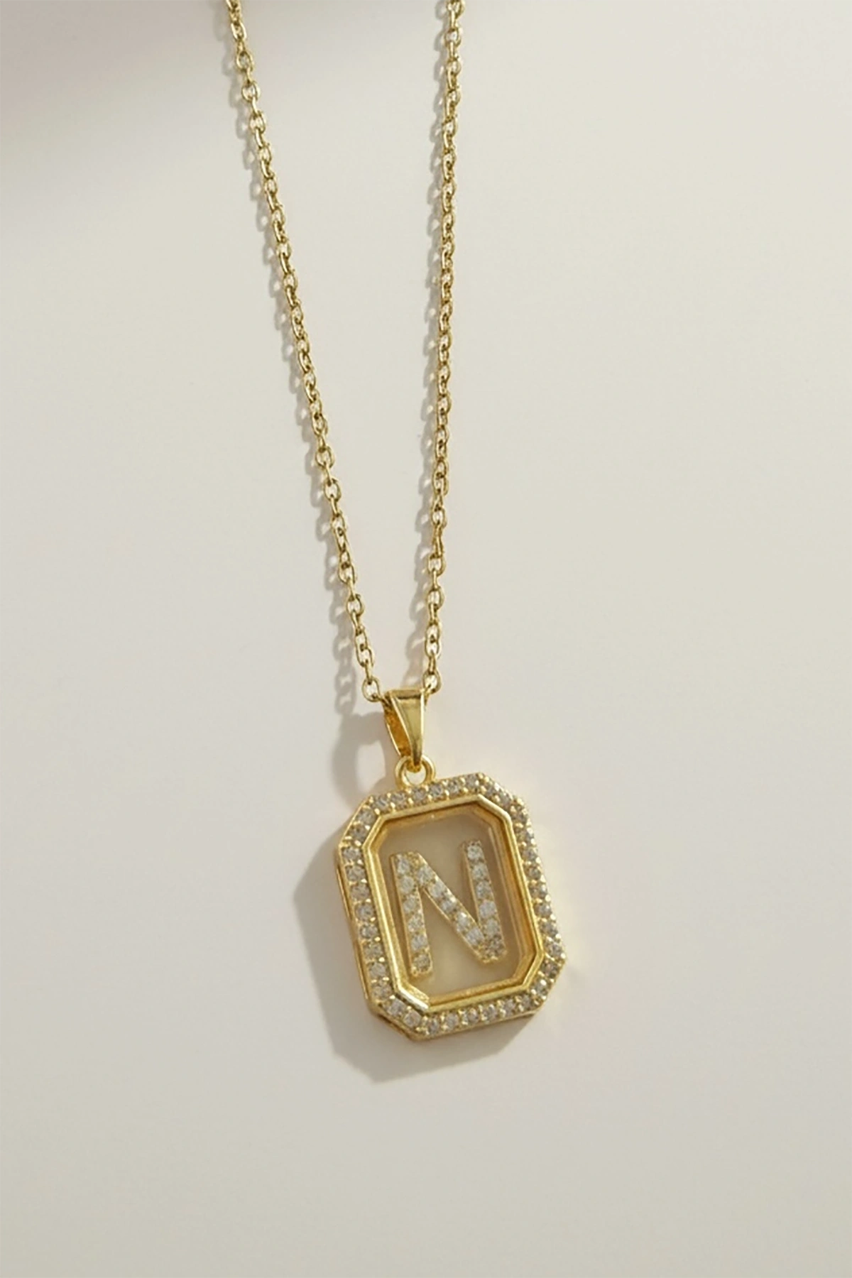 Altın Renk N Harf Taş Detaylı Çelik Kolye