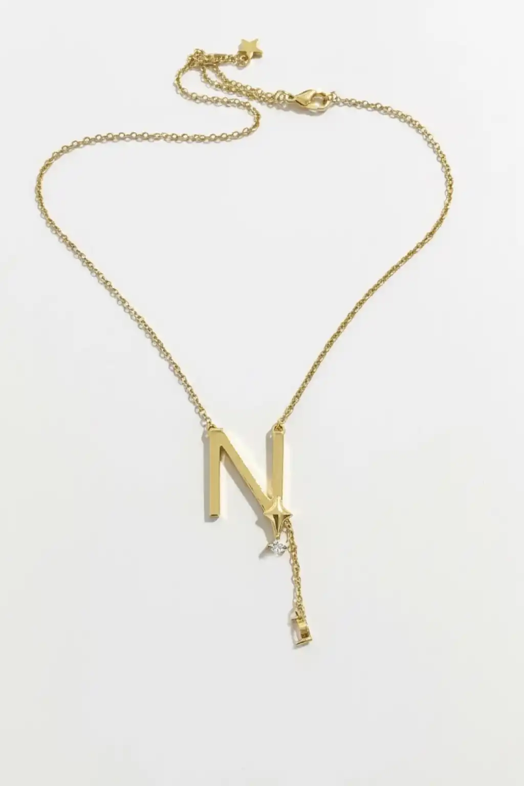 Altın Renk N Harfli Taş Detaylı Çelik Kolye