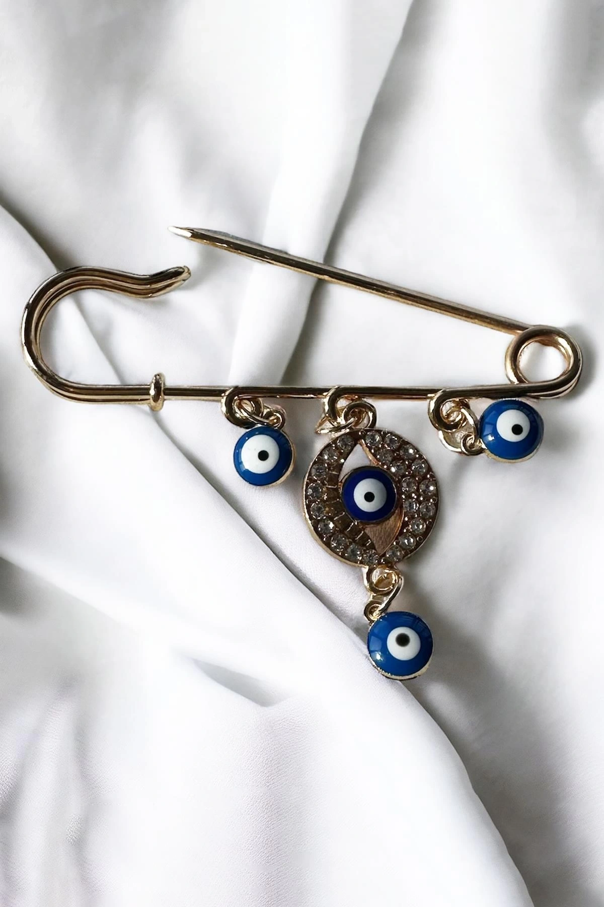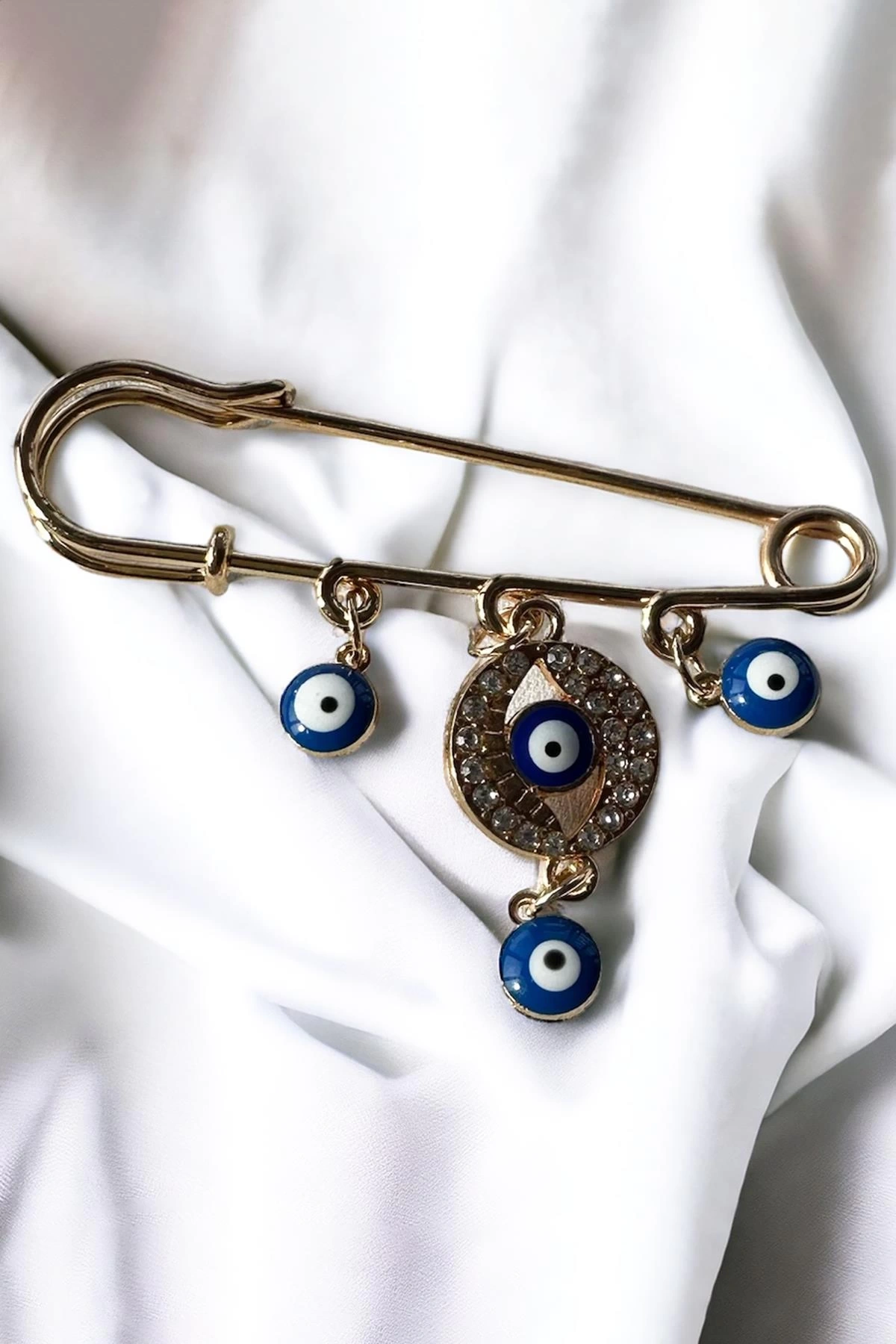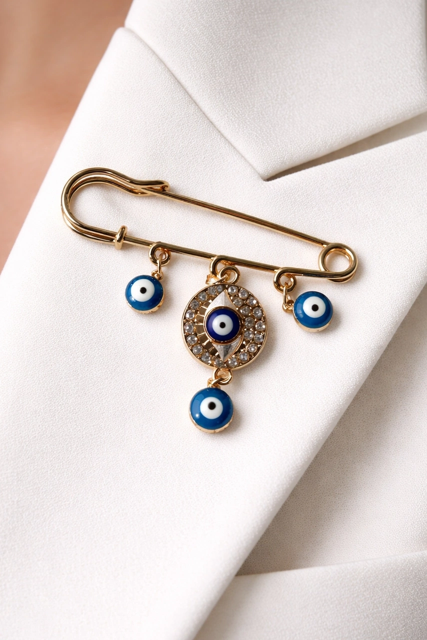 Altın Renk Nazar Boncuğu Detaylı Broş