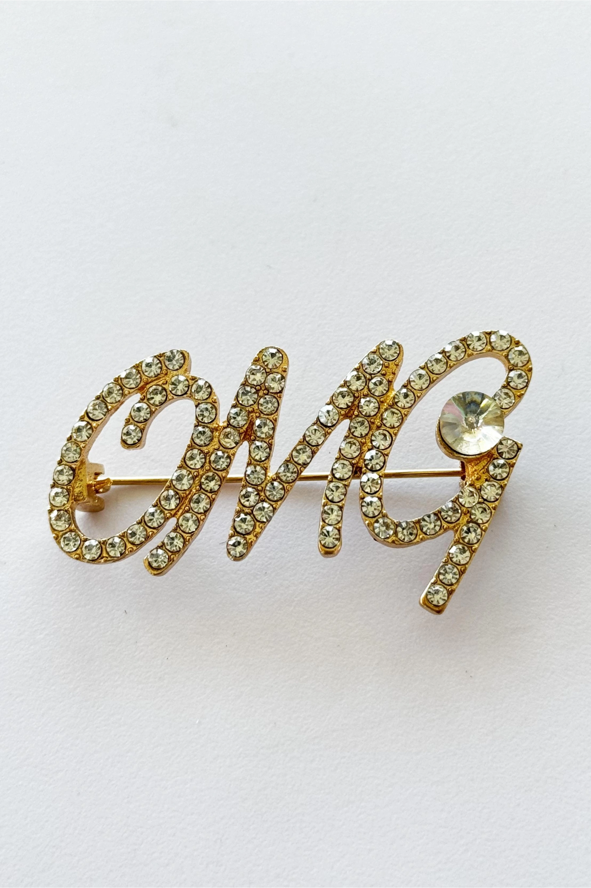 Altın Renk Omg Yazılı Taşlı Broş