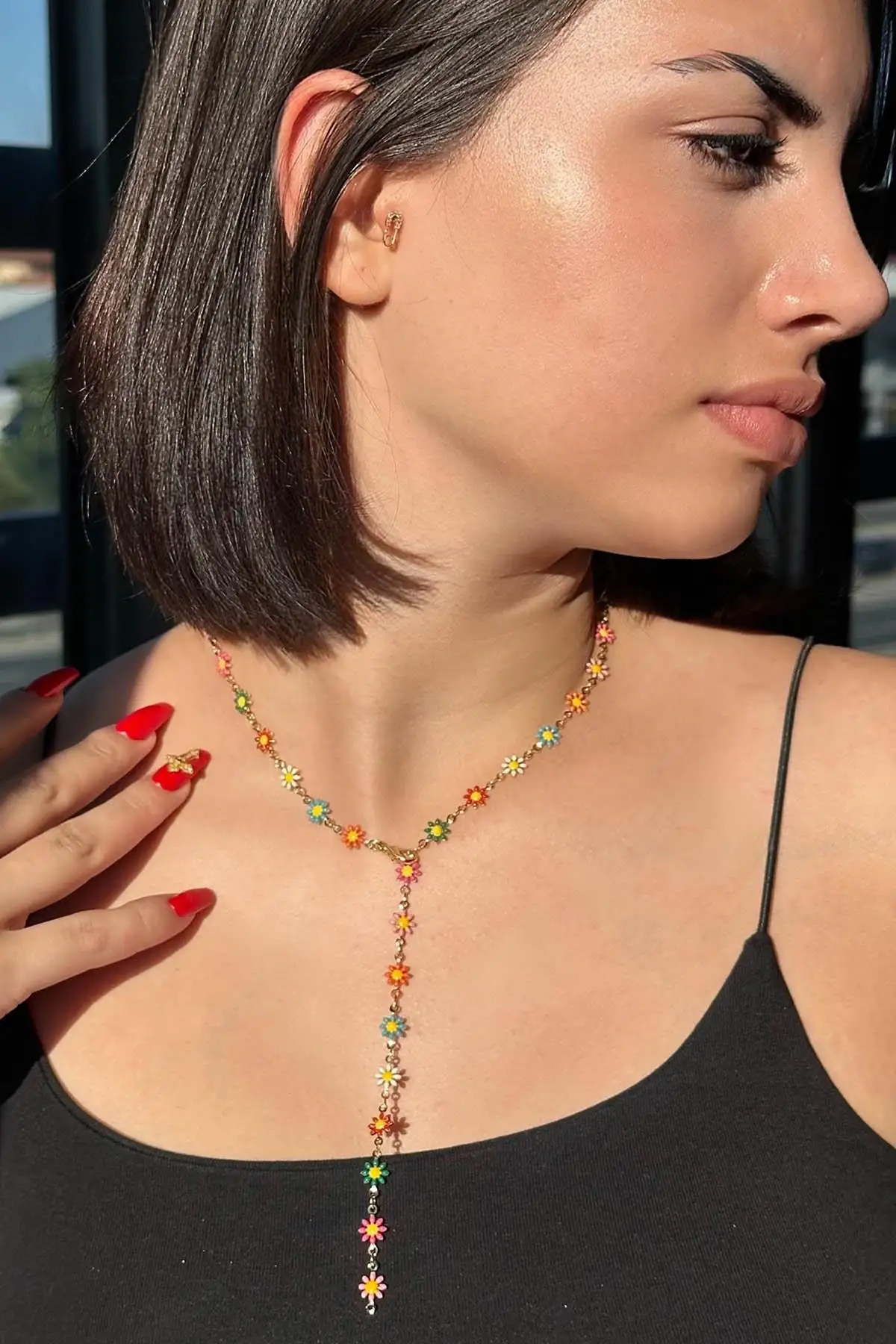 Altın Renk Taş Detaylı Çelik Y Kolye