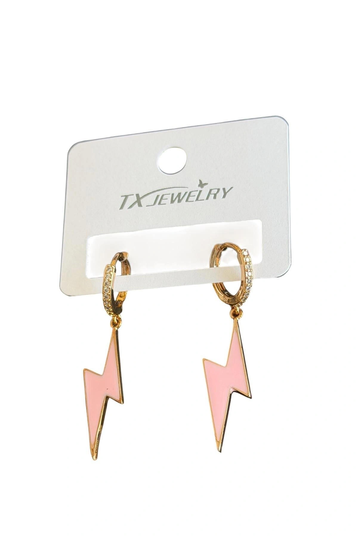 Altın Renk Pembe Şimşek Detaylı Tx Küpe (Çift)