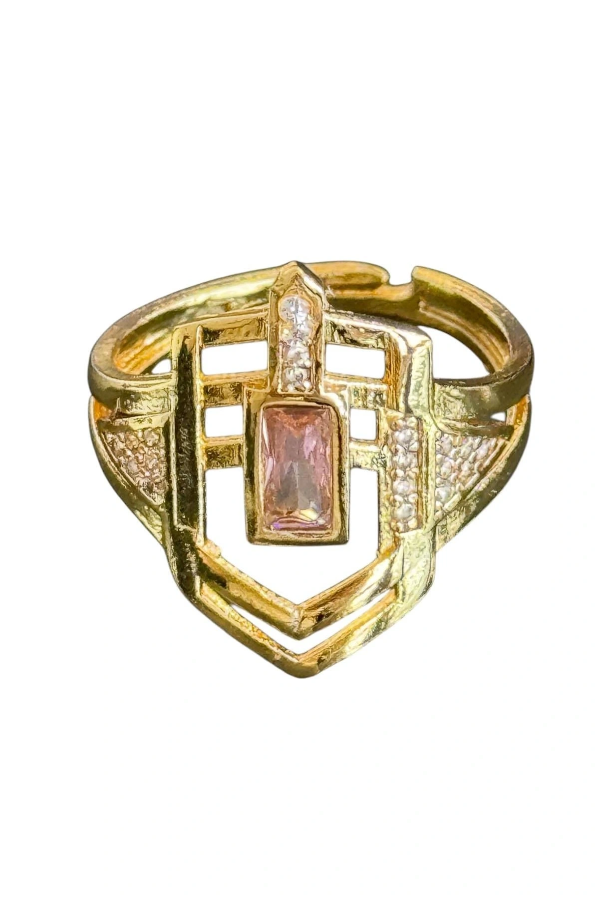 Altın Renk Pembe Taş Detaylı Ayarlanabilir Yüzük