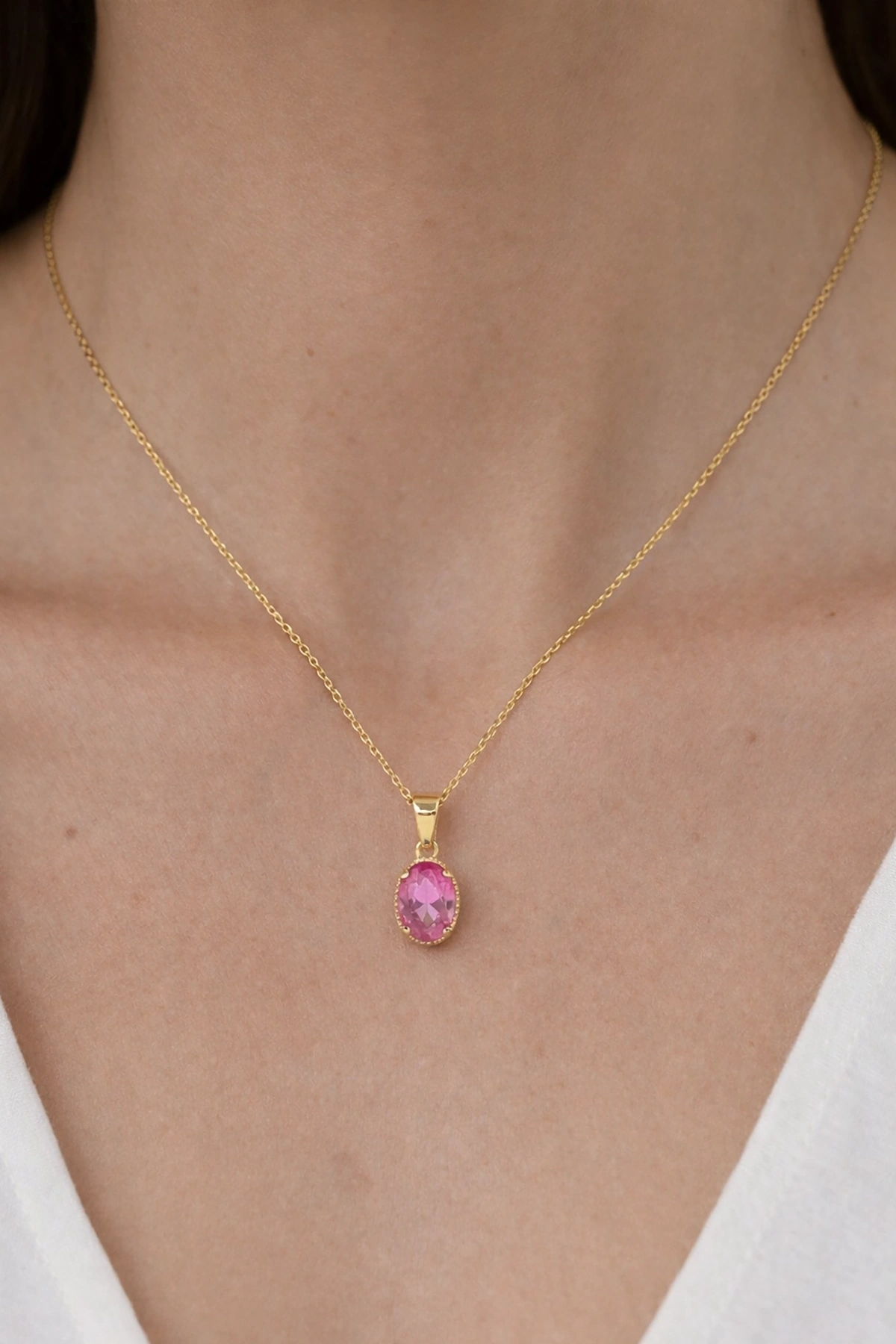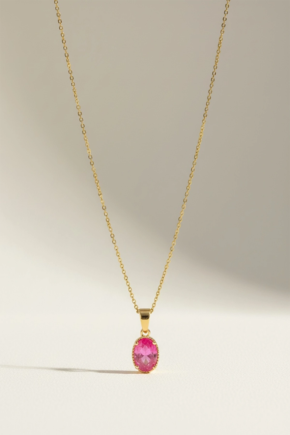 Altın Renk Pembe Taş Detaylı Çelik Kolye
