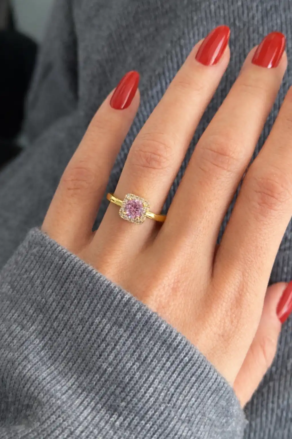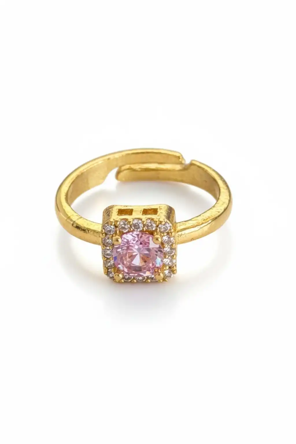 Altın Renk Pembe Taşlı Baget Yüzük (Ayarlanabilir)