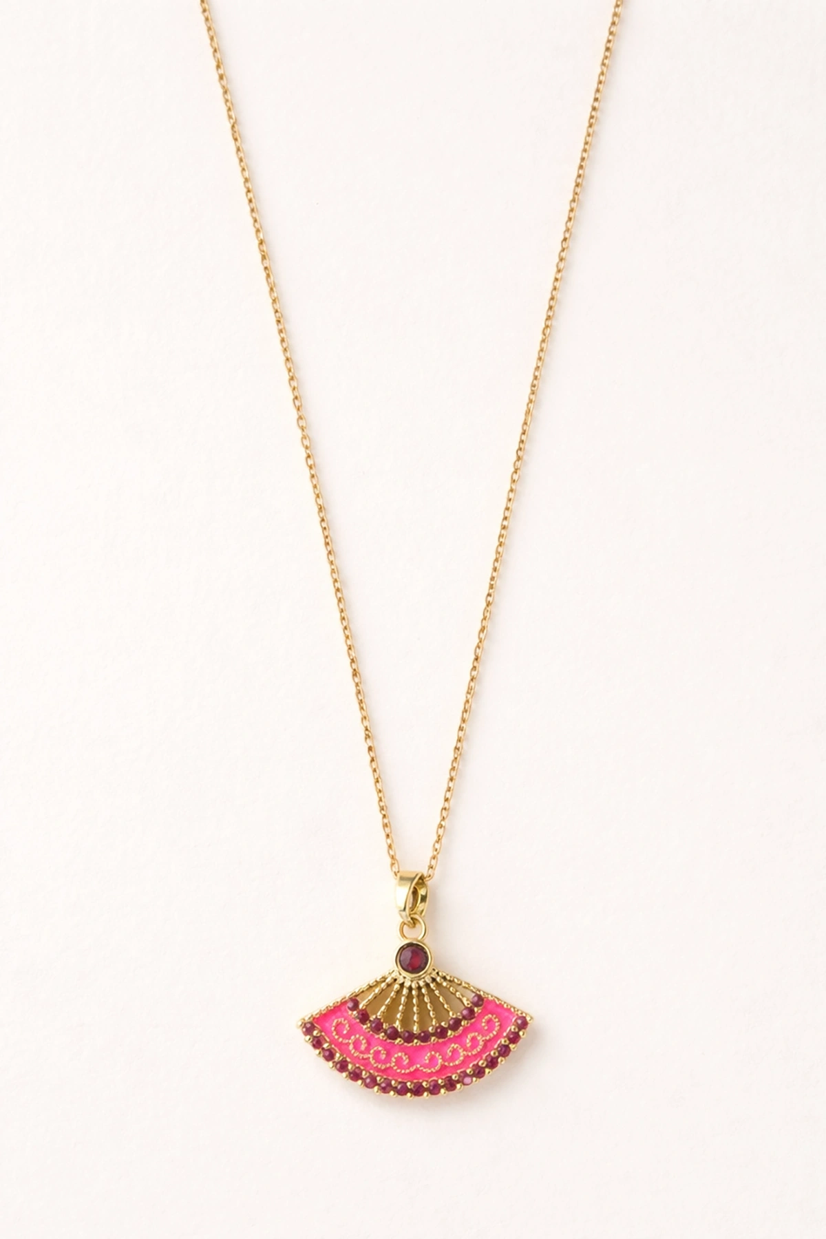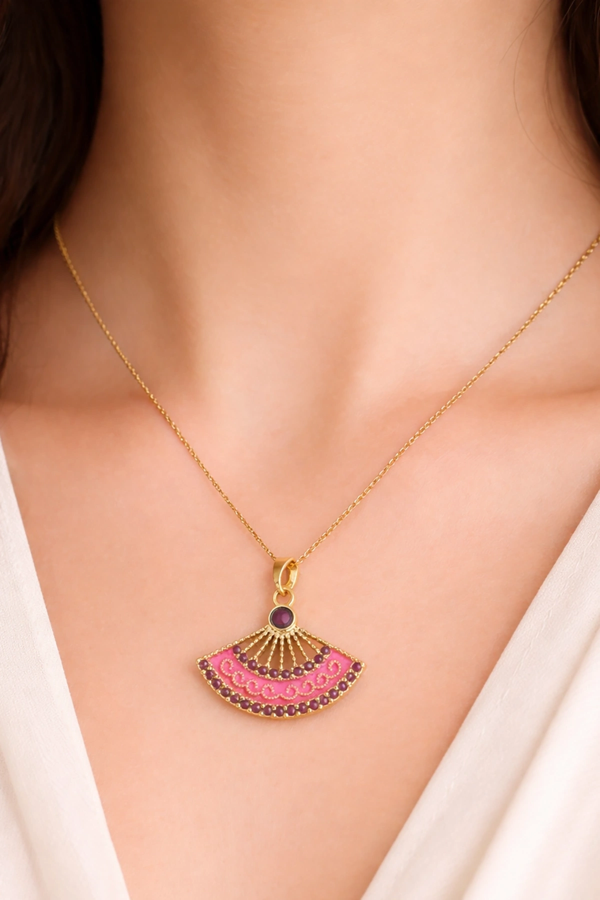 Altın Renk Pembe Yelpaze Figürlü Çelik Kolye