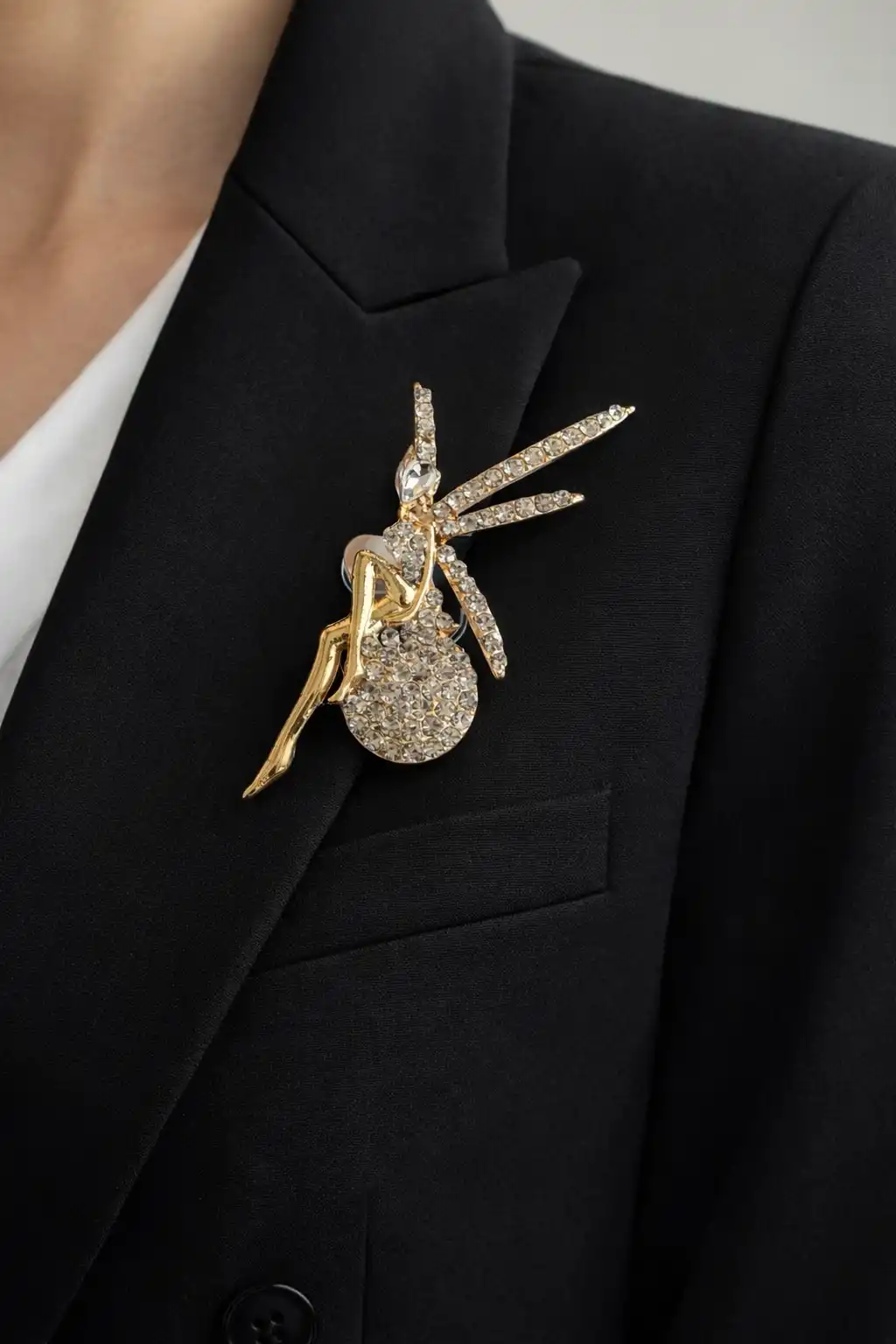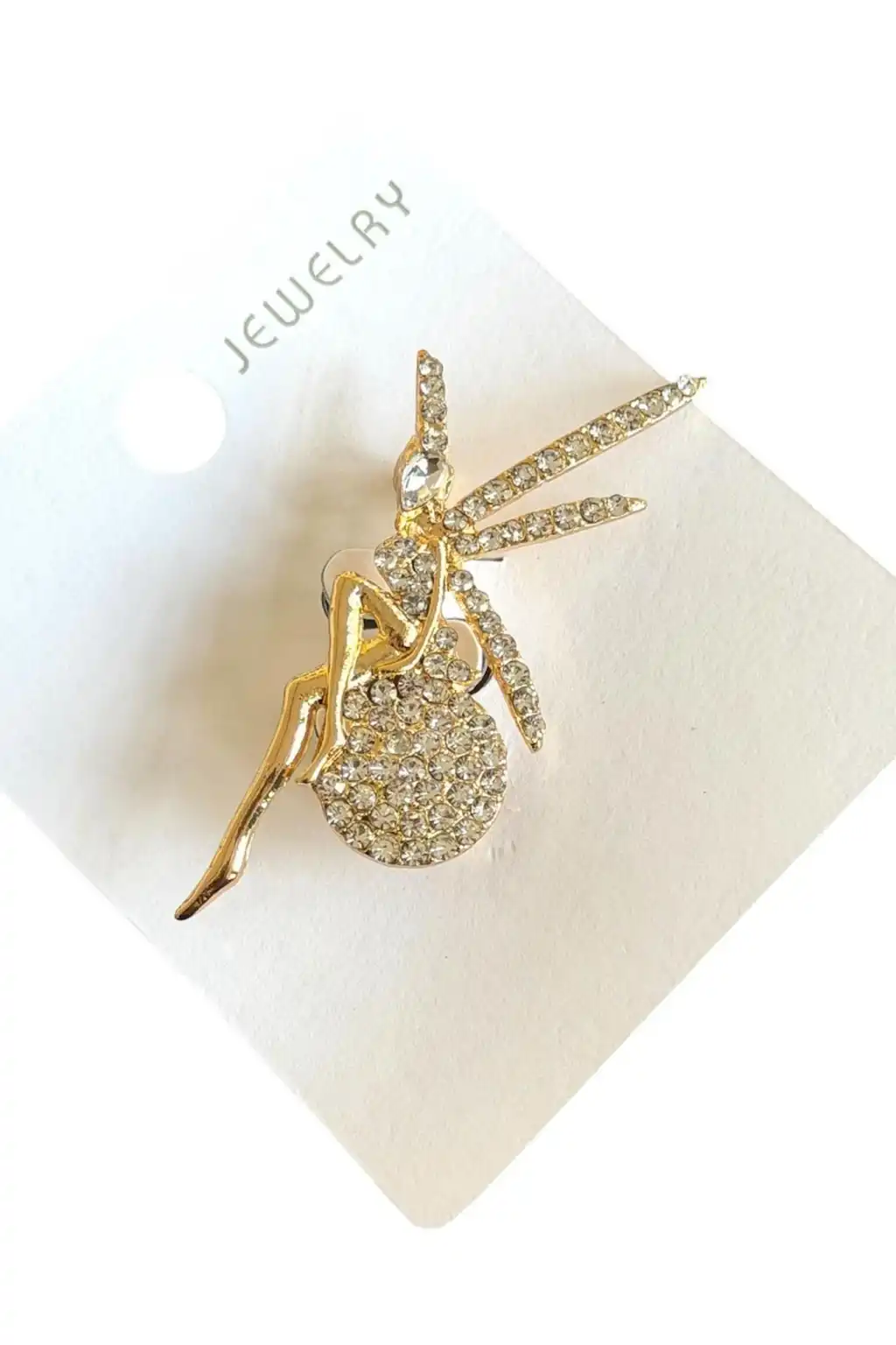 Altın Renk Yıldız Figürlü Taşlı Broş