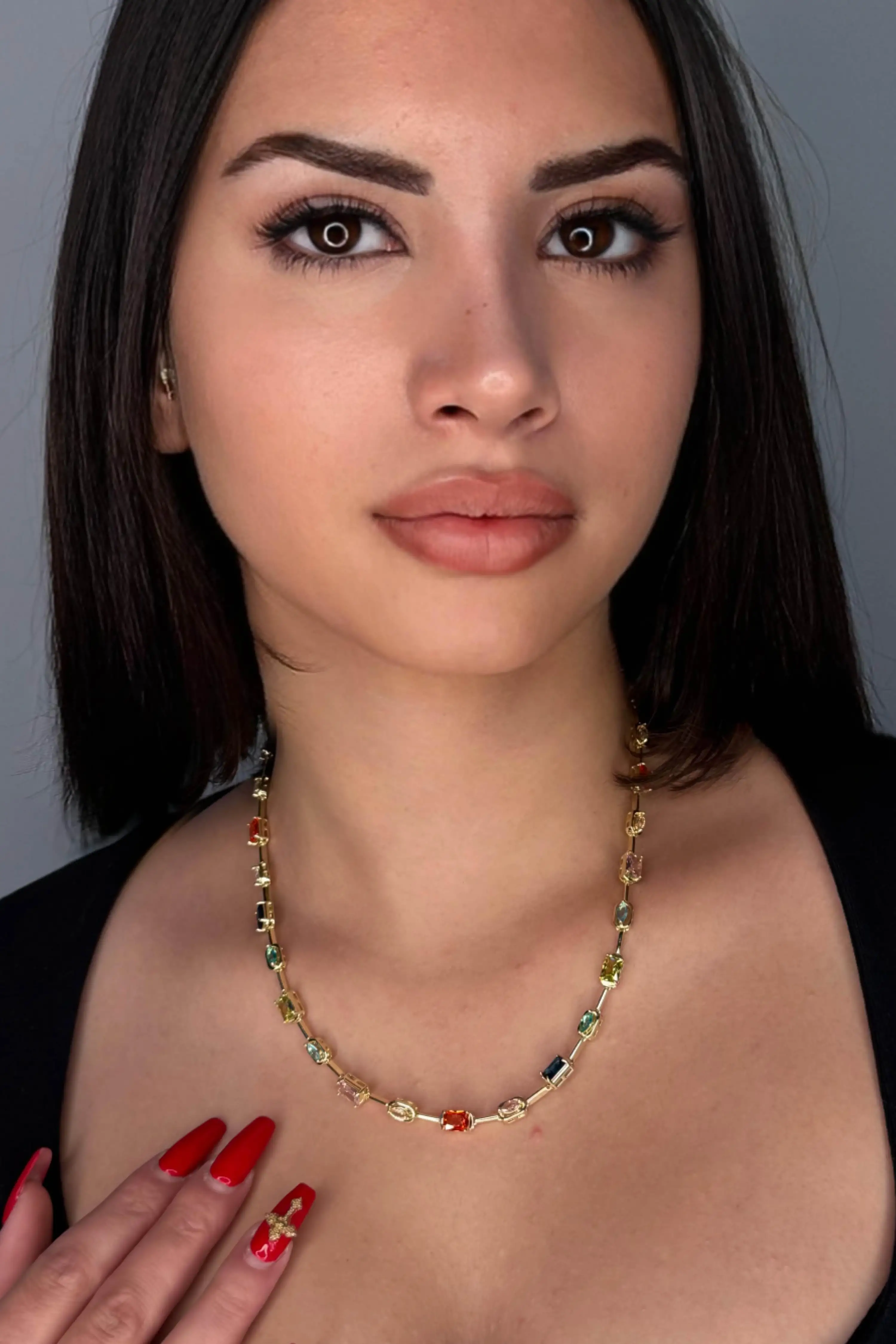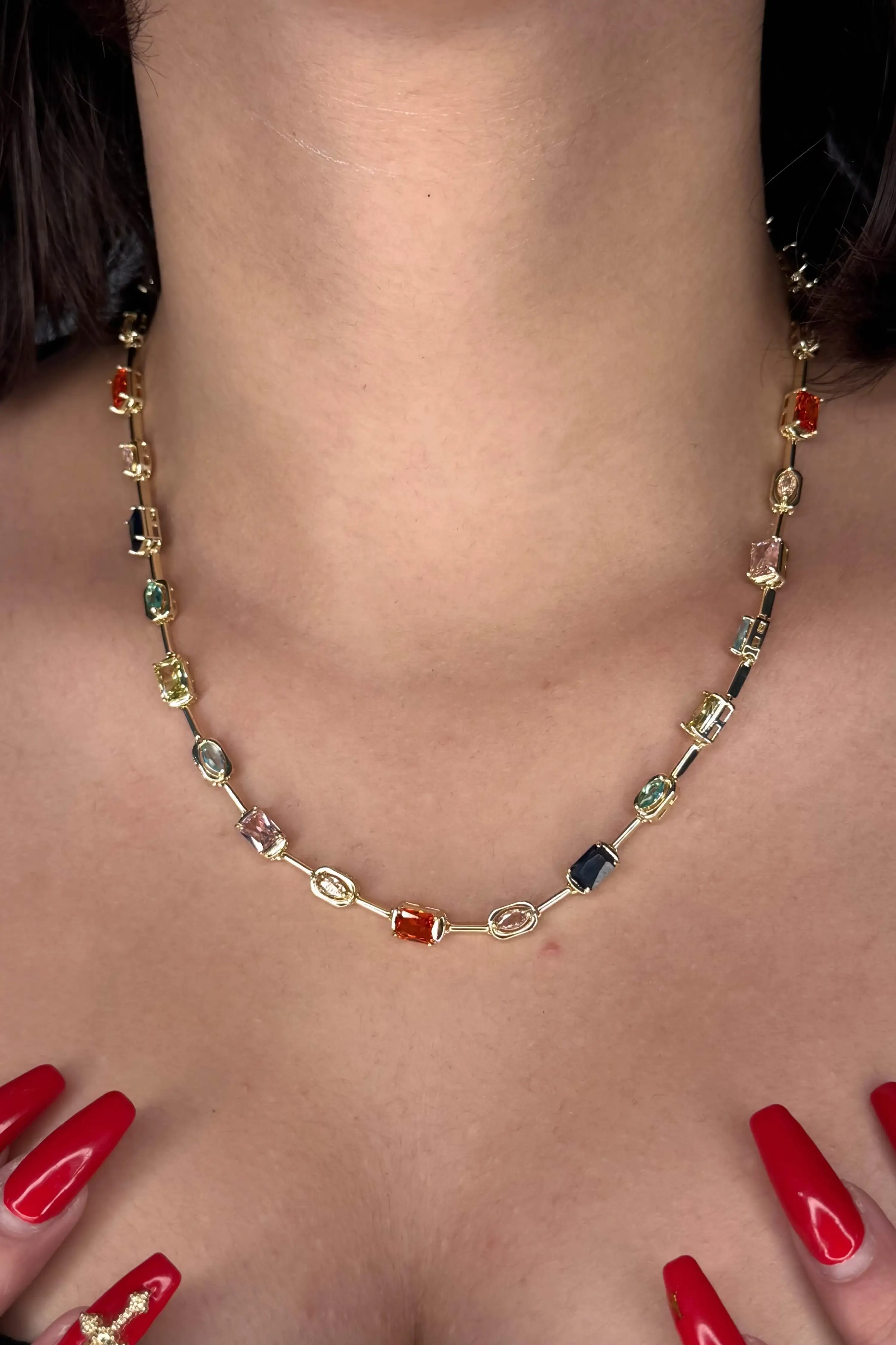 Altın Renk Renkli Taş Detaylı 14K Altın Kaplama VİP Kolye