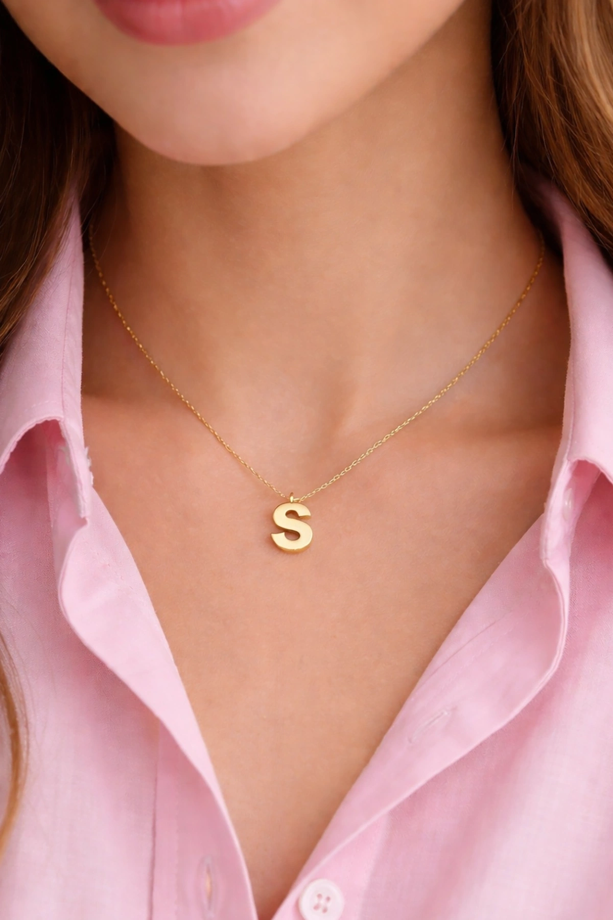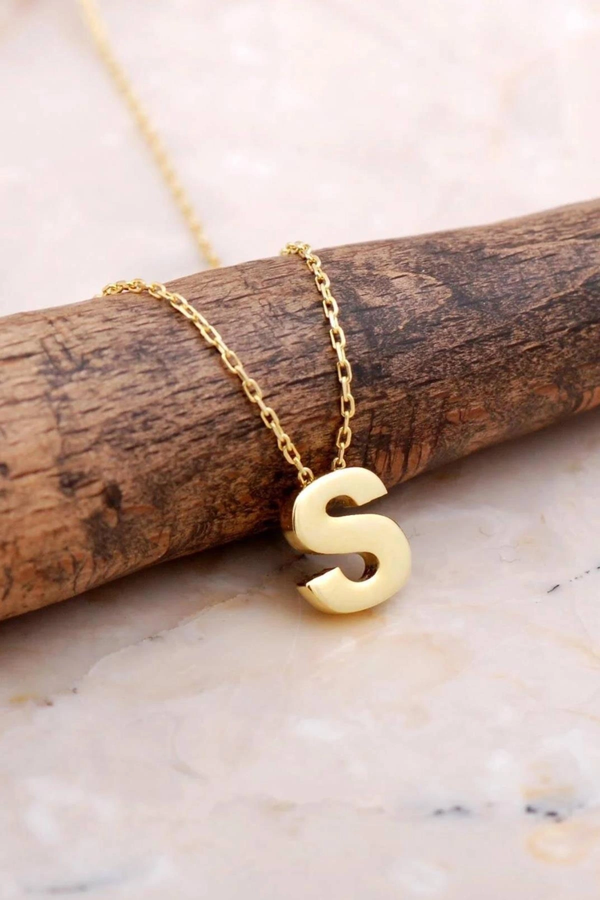 Altın Renk S Harf Çelik Kolye