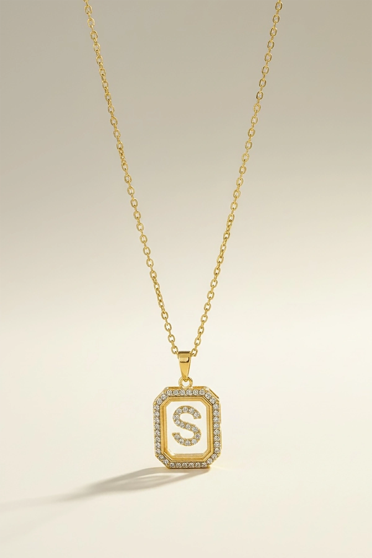 Altın Renk S Harf Taş Detaylı Çelik Kolye