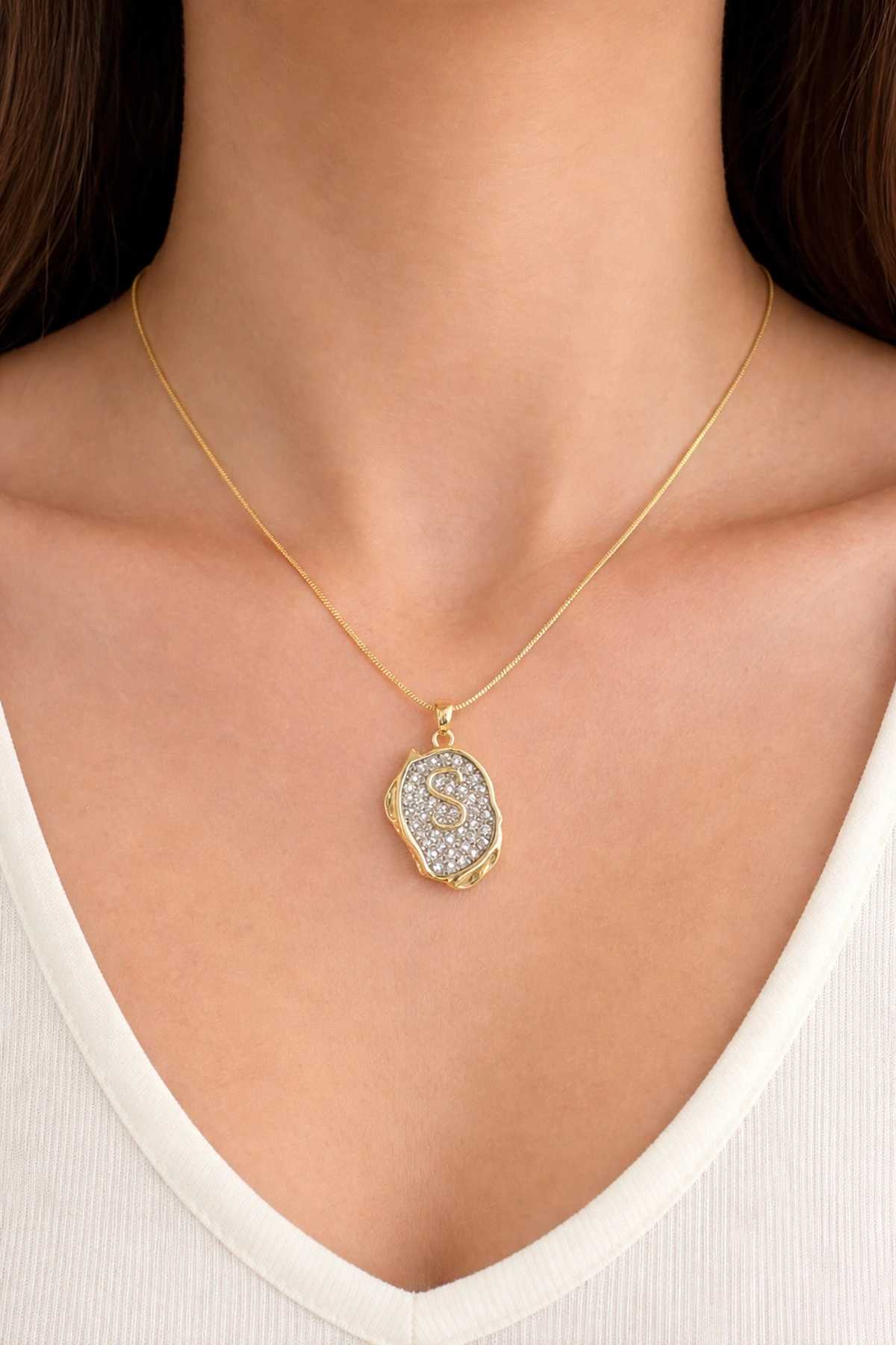 Altın Renk S Harf Taş Detaylı Çelik Kolye