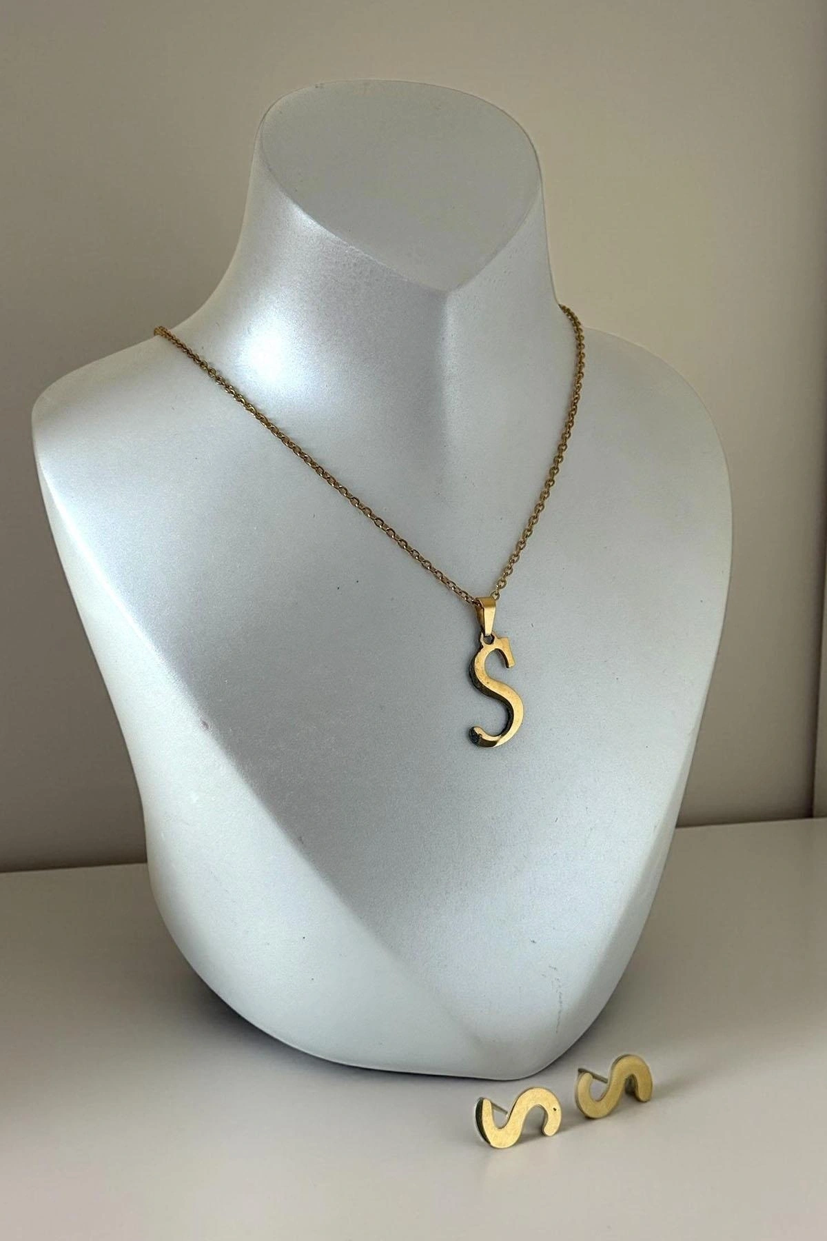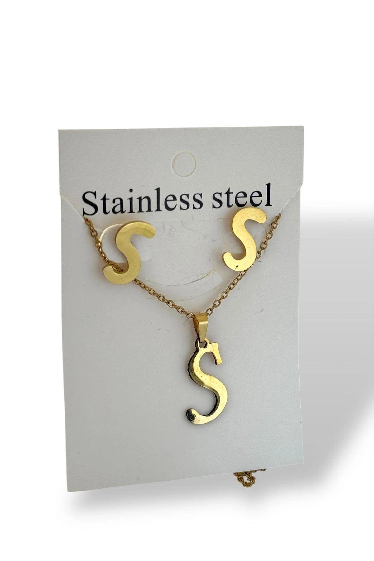 Altın Renk S Harfli Çelik Kolye Set