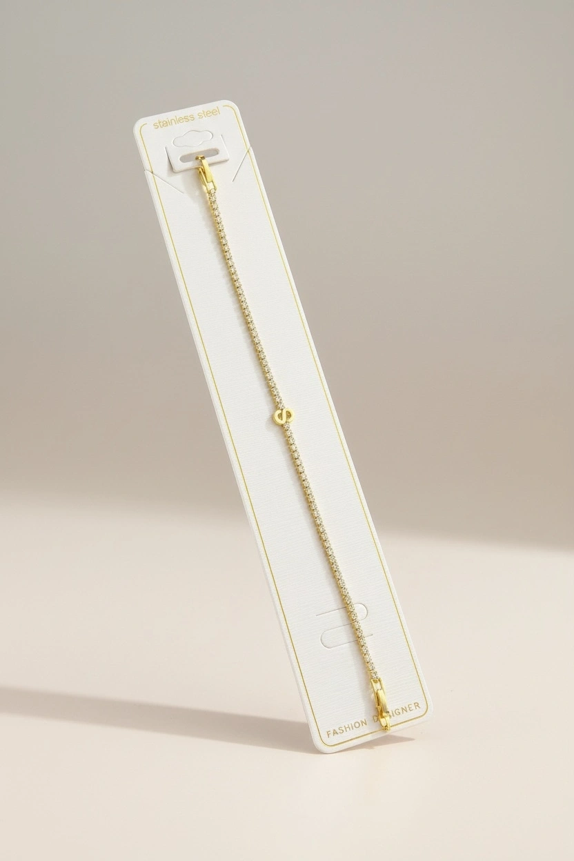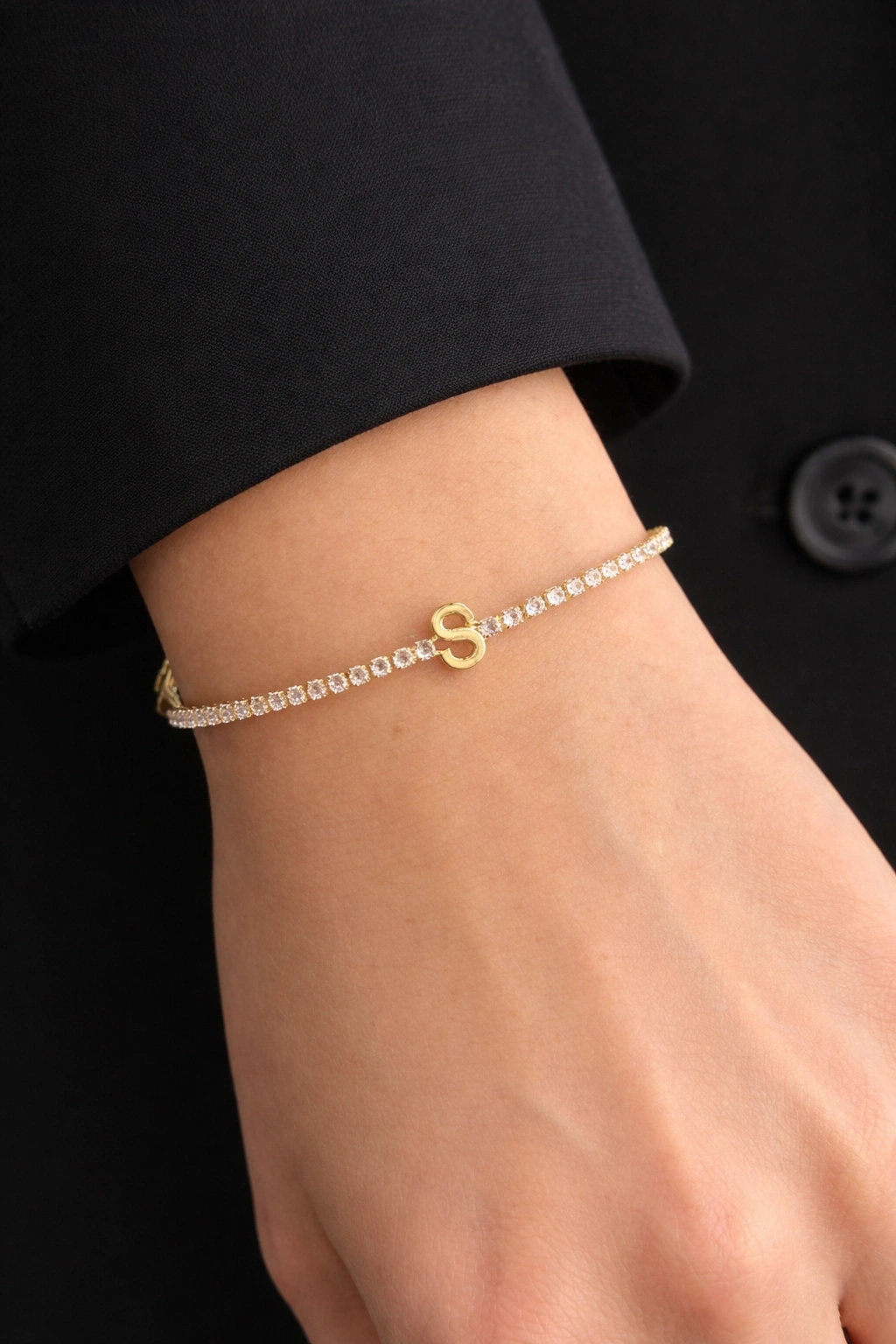Altın Renk S Harfli Taş Detaylı Çelik Bileklik
