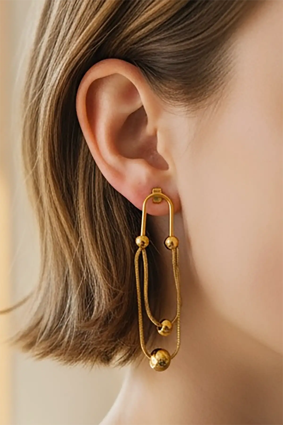 Altın Renk Sallantılı Çelik Küpe (Çift)