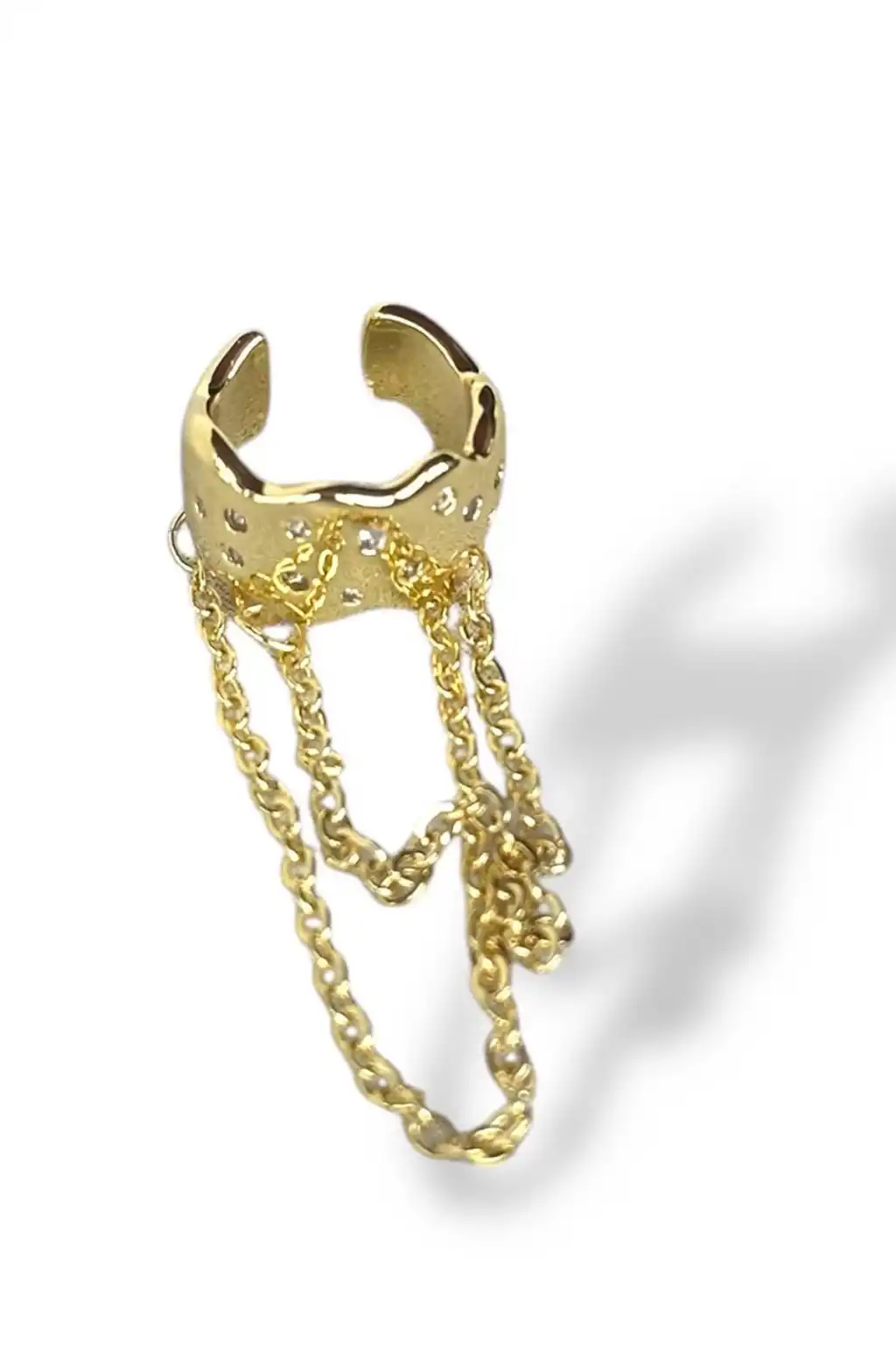 Altın Renk Sallantılı Ear Cuff (Tek)