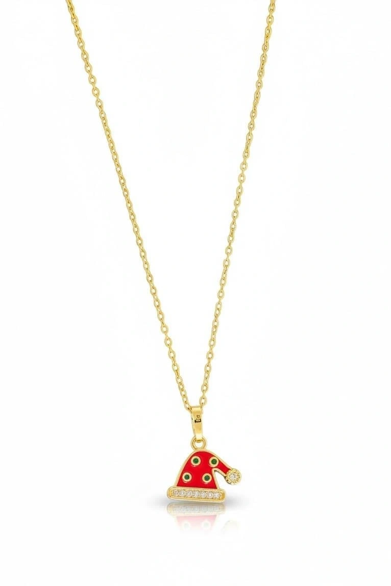 Altın Renk Şapka Figürlü Çelik Yılbaşı Kolyesi
