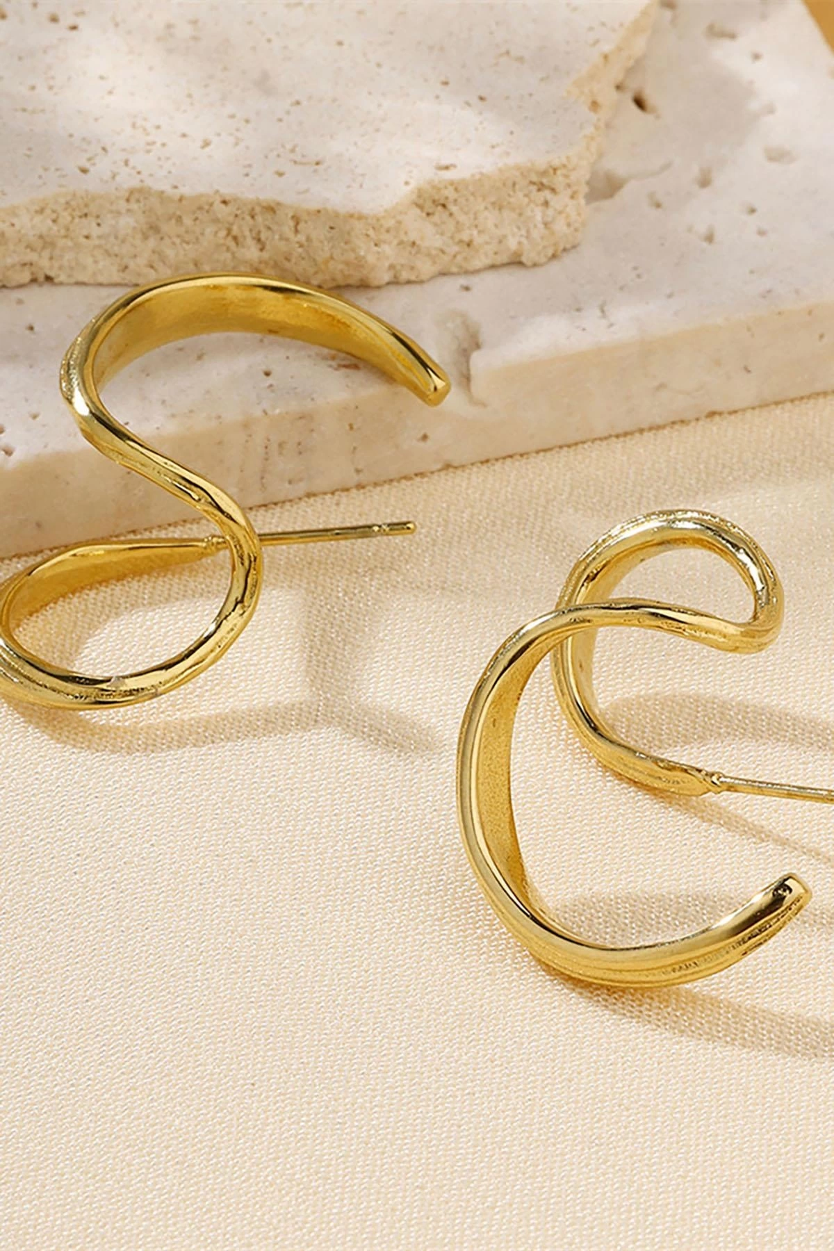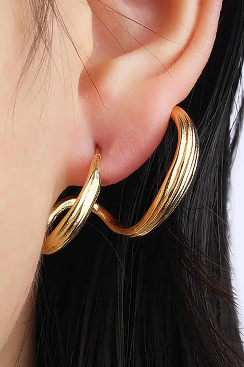 Altın Renk Sarmal Çelik Küpe (Çift)
