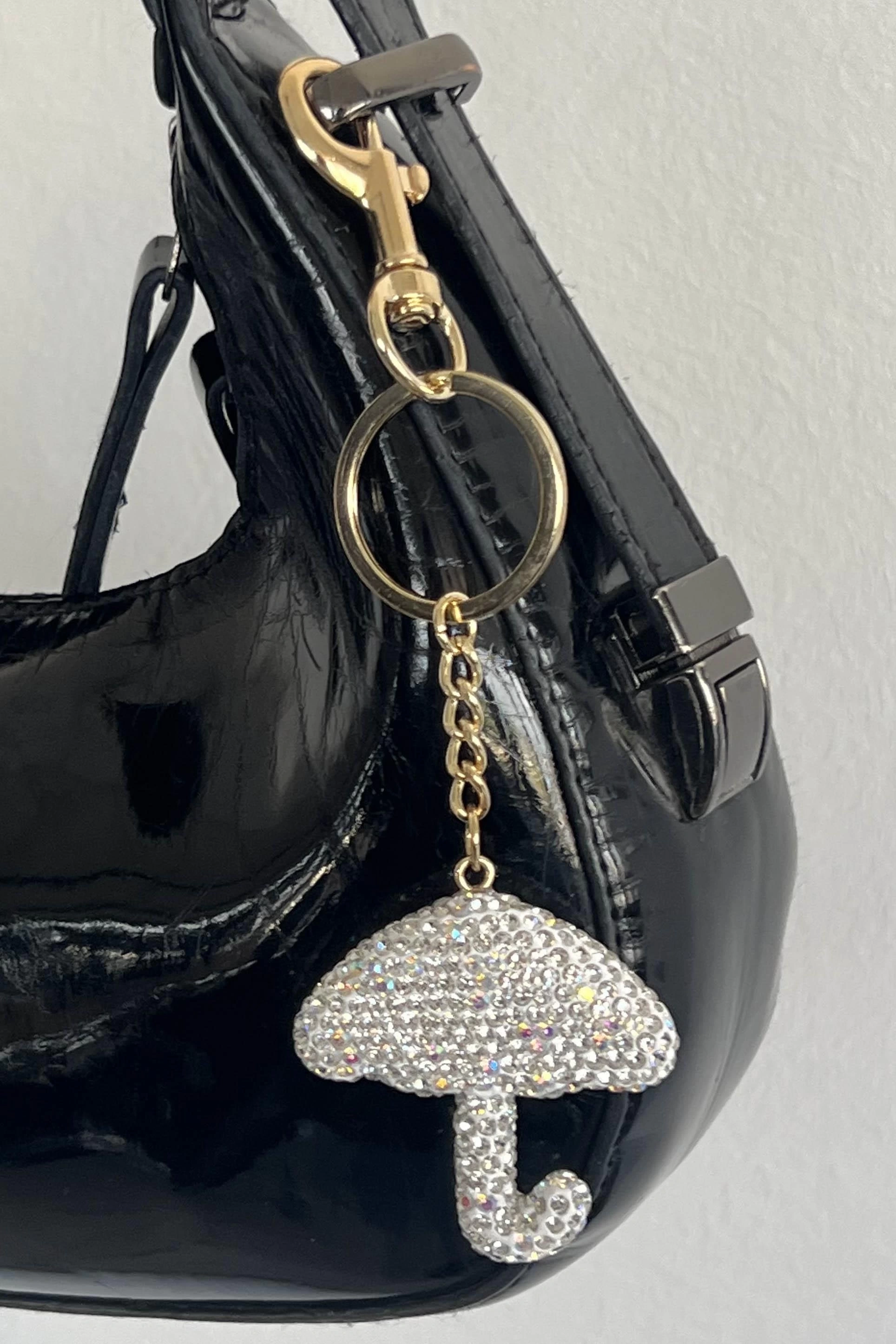 Altın Renk Şemsiye Figürlü Gümüş Renk Taş Detaylı Çanta Charm/ Anahtarlık