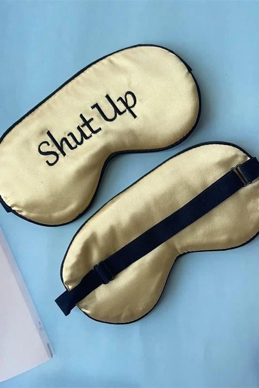 Altın Renk Shut Up Yazılı Saten Uyku Bandı