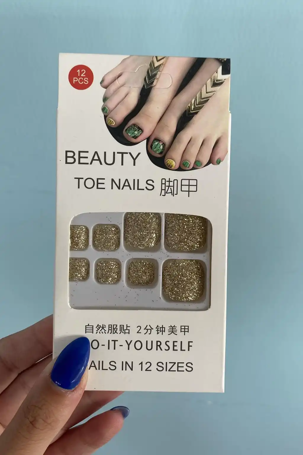 Altın Renk Sim Detaylı 12'li Ayak Takma Tırnak Seti