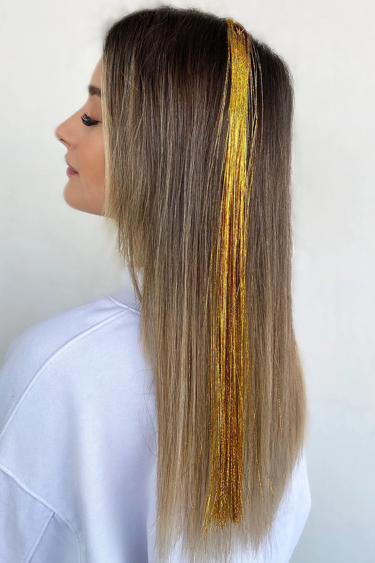 Karışık Renk Simli Yan Postiş Hair Tinsel Shiny Hair (50 Cm)