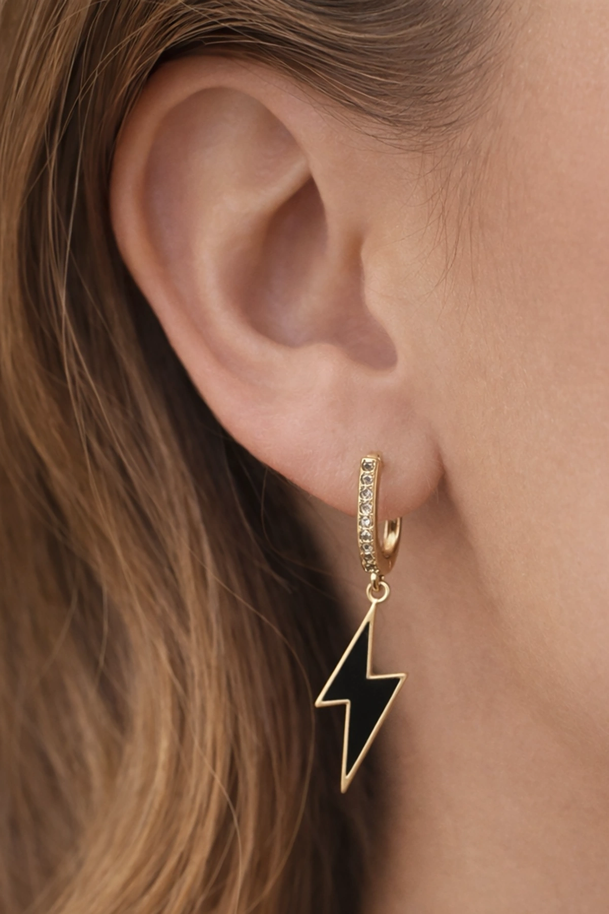 Altın Renk Şimşek Figürlü Taşlı Tx Küpe (Çift)