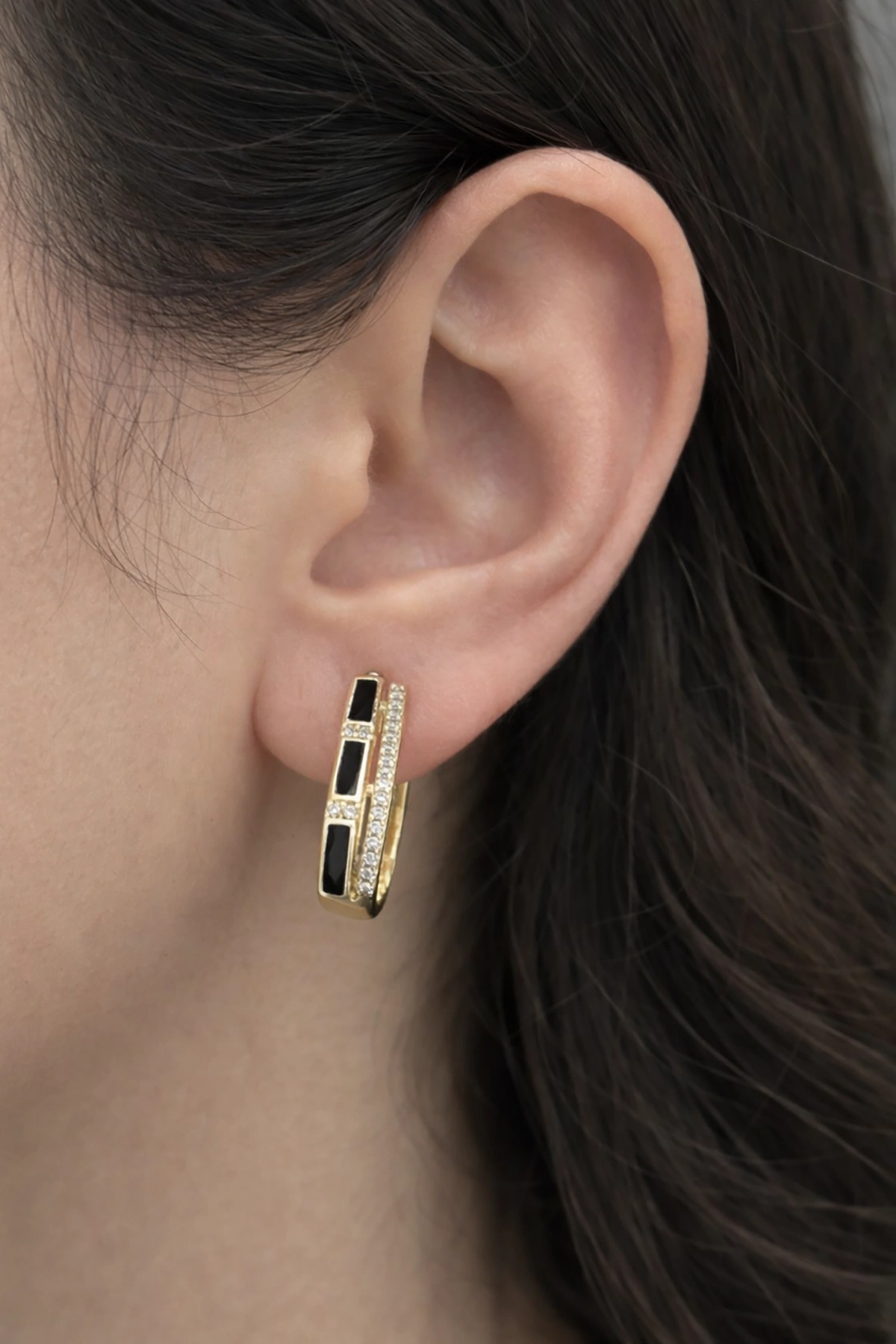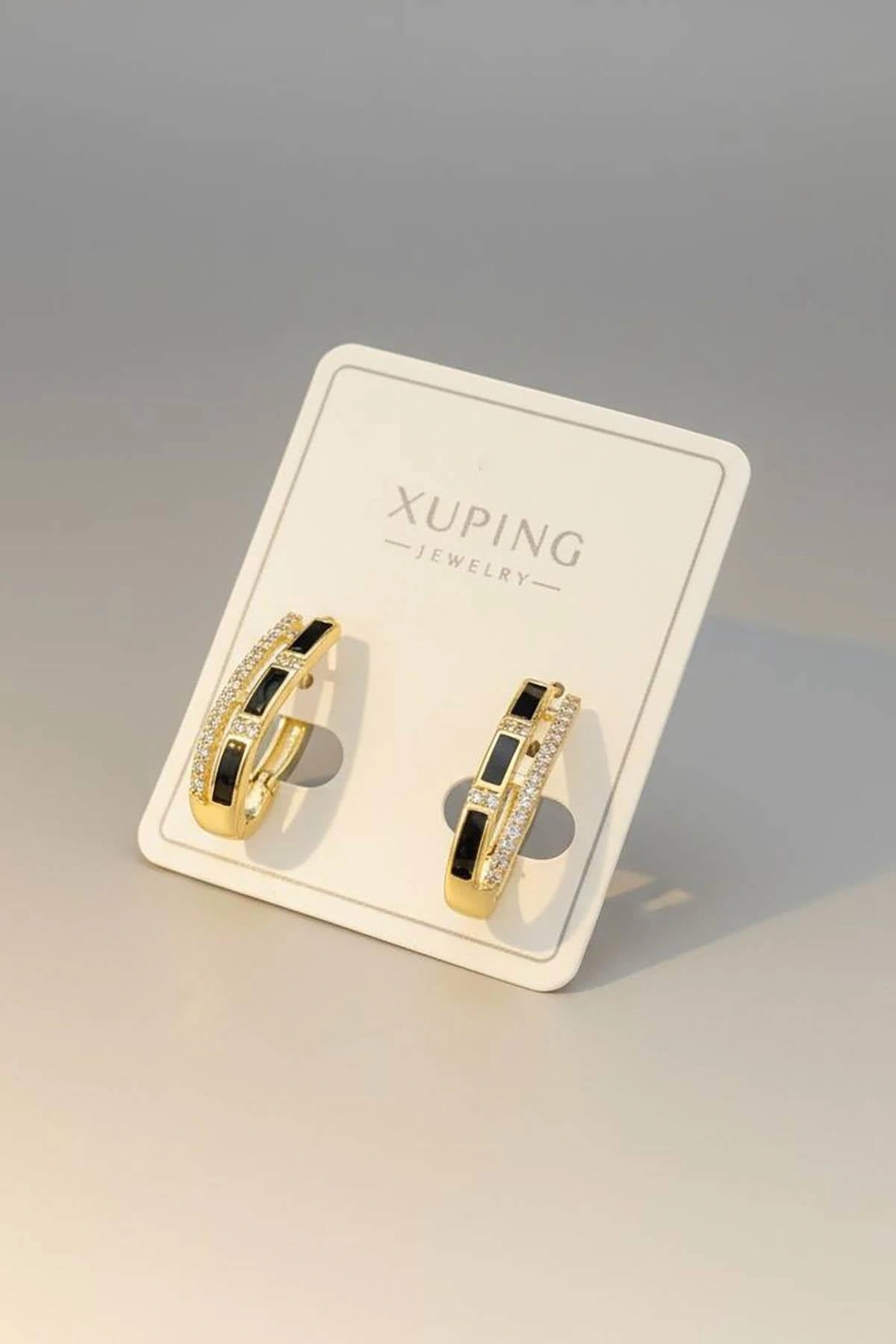 Altın Renk Siyah Taş Detaylı Xuping Küpe (Çift)