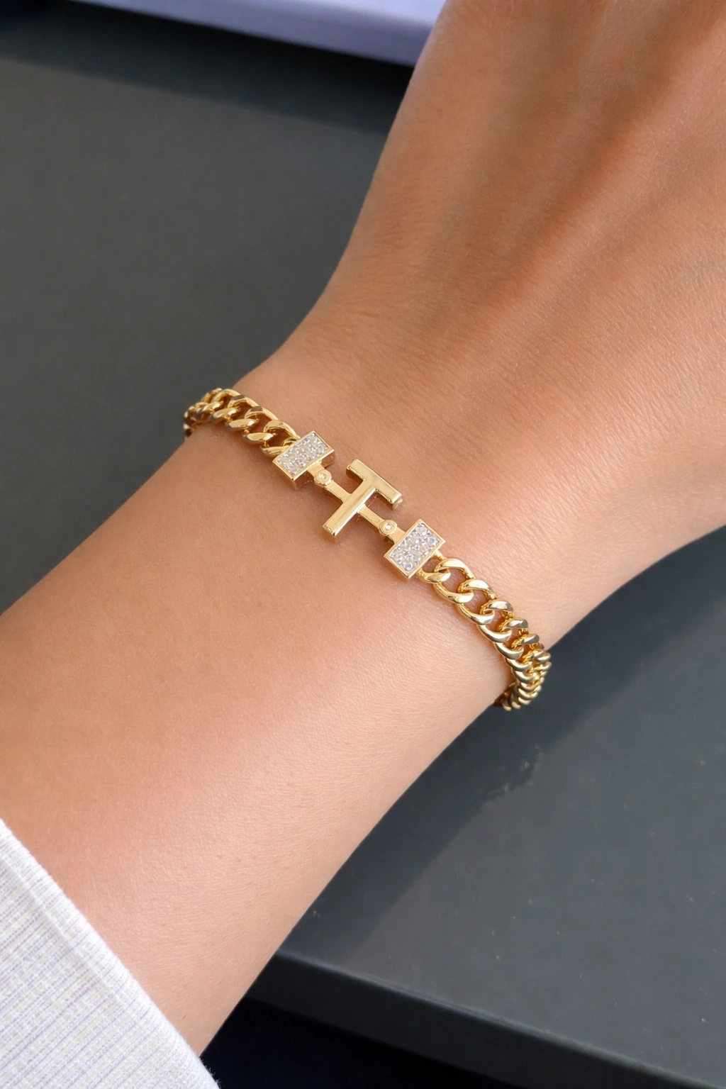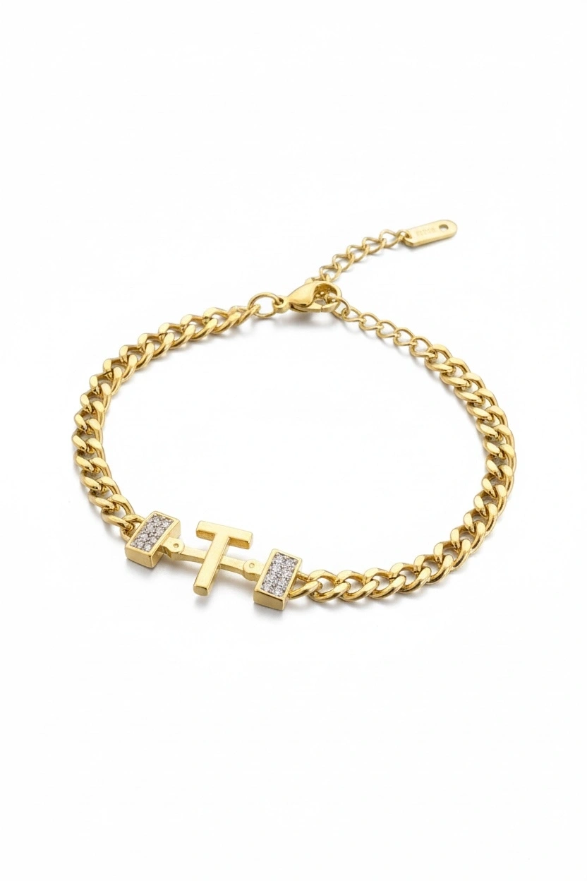 Altın Renk T Harf Çelik Bileklik