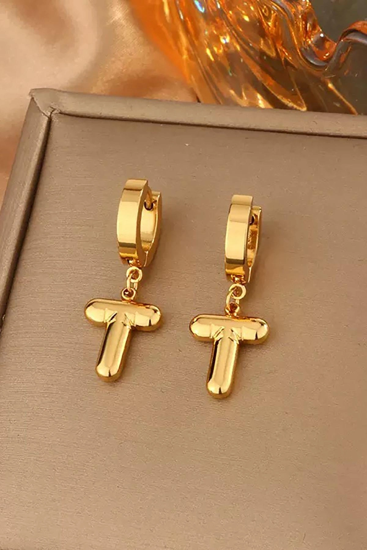 Altın Renk T Harf Çelik Küpe (Çift)