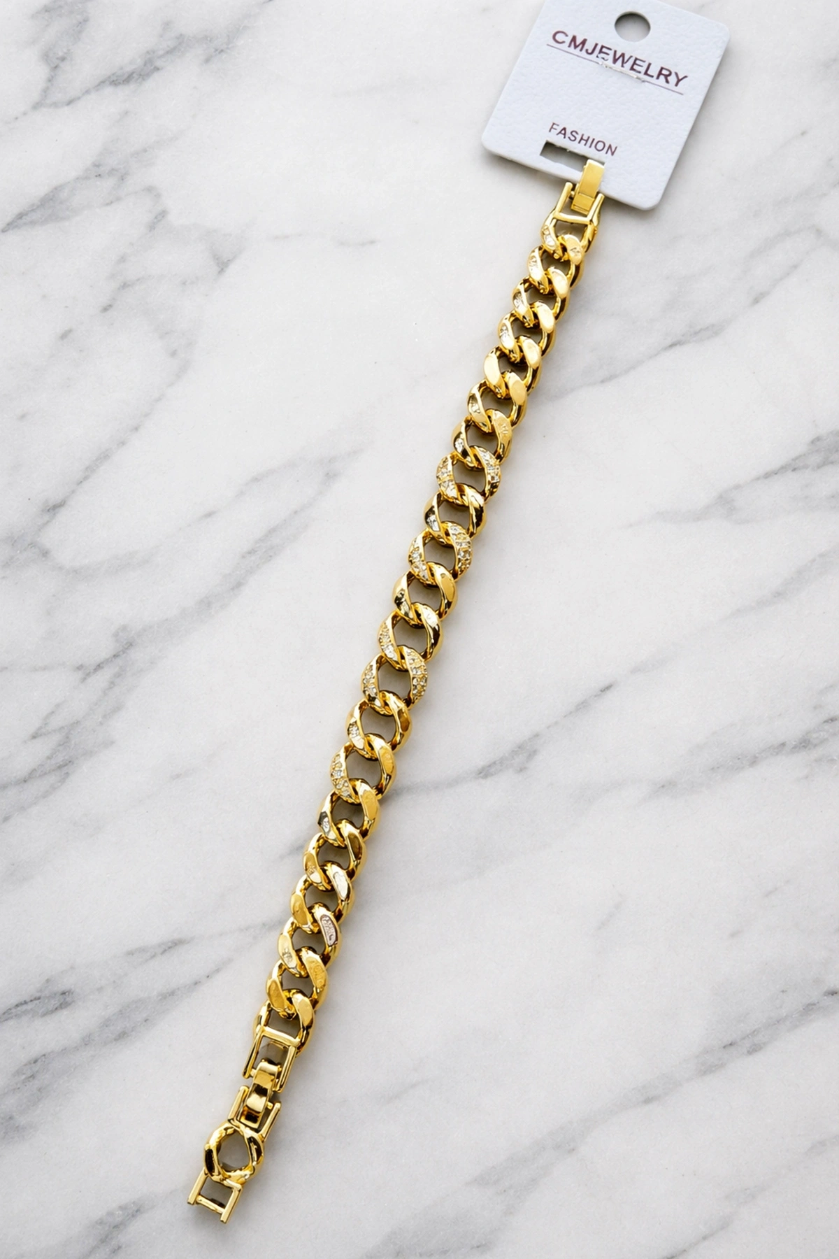Altın Renk Taş Detaylı 14K Altın Kaplama CM Bileklik