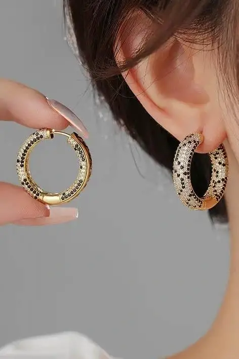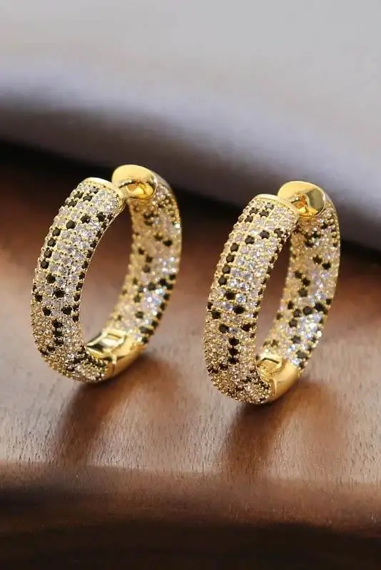 Altın Renk Taş Detaylı 14K Altın Kaplama Halka Küpe (Çift)
