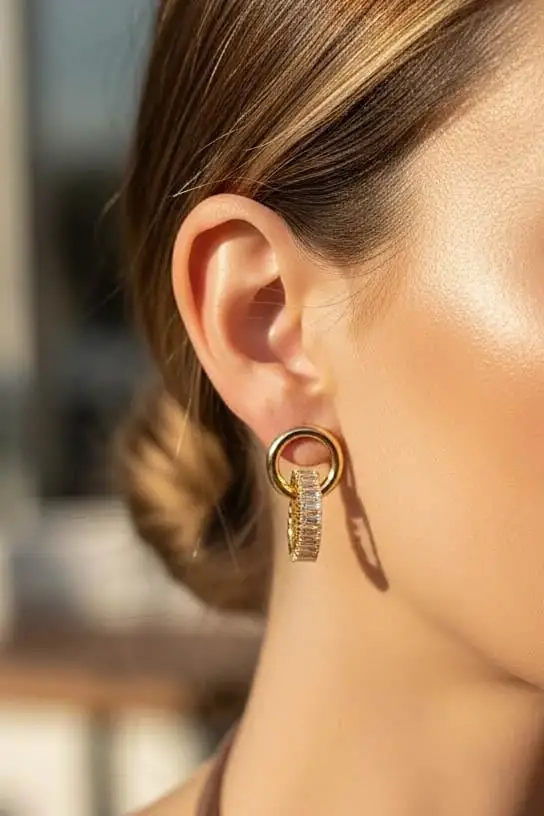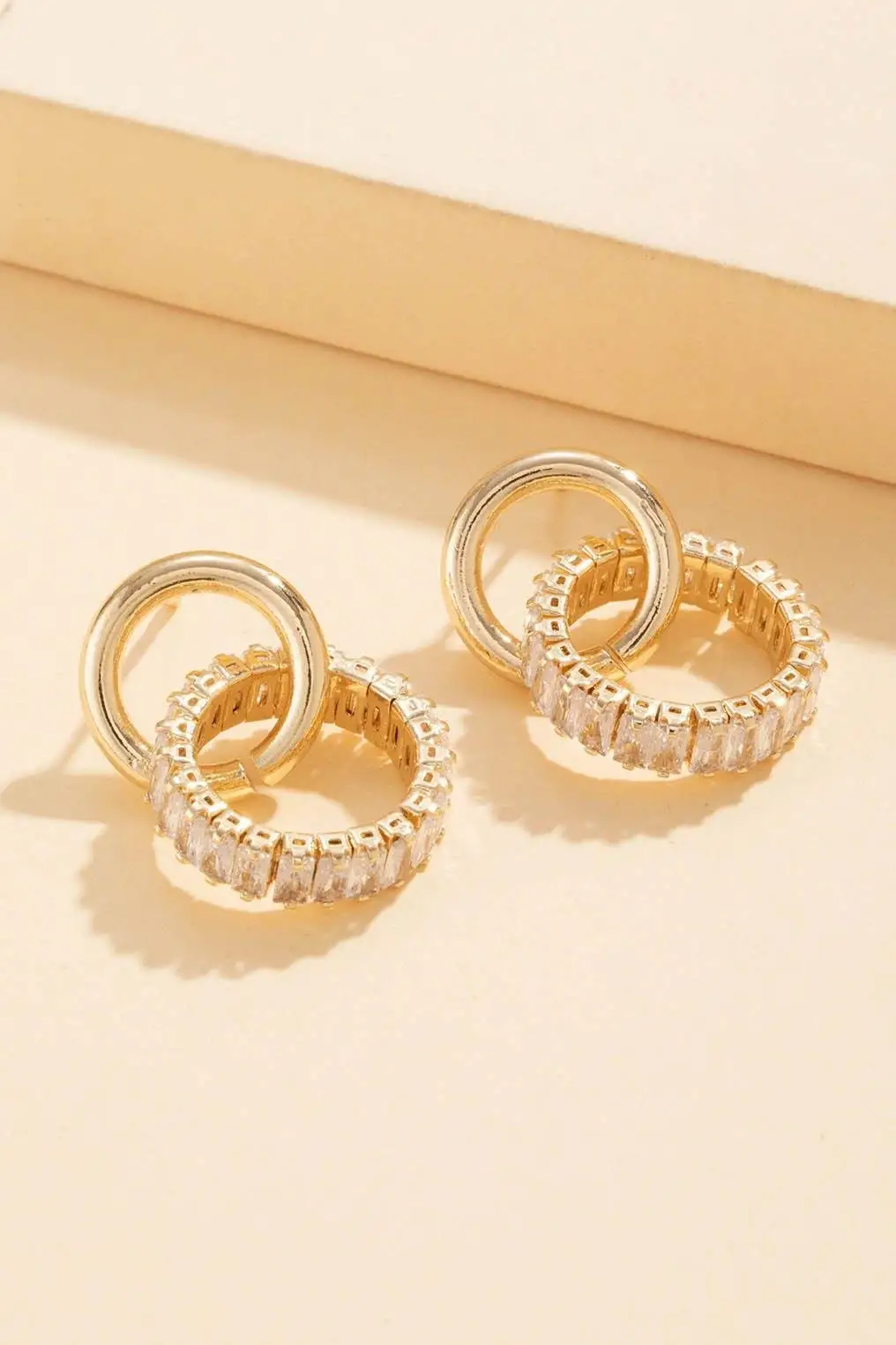 Altın Renk Taş Detaylı 14K Altın Kaplama Halka Küpe (Çift)